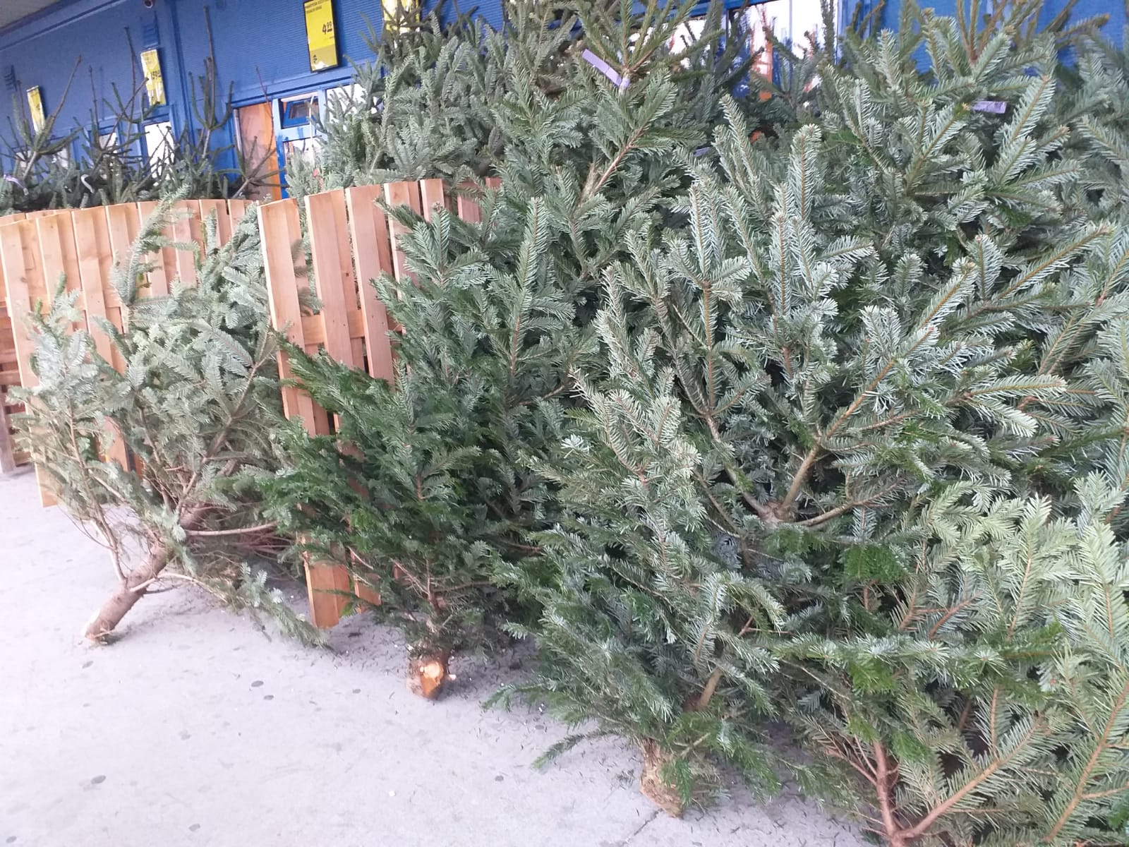 Parcarea magazinului de bricolaj este mult mai plină de brazi, prețurile plecând aici de la 59 de lei și ajungând până la 279 de lei. Iar cei care vor să aibă un brad în curte pe care să îl planteze după ce trec sărbătorile de iarnă, au posibilitatea de a-l cumpăra la ghiveci, valoarea unui astfel de conifer fiind cuprinsă între 100 și 180 de lei, cei mai scumpi având o coroana mai bogată, dar și dimensiunile mai mari. Dacă în ceilalți ani cumpărătorul era pus să-și curețe singur tulpina bradului pentru a-l pune în suport, acum acest lucru se plătește, compania percepând o taxă de 5 lei. O taxă de 3,9 lei este cerută și pentru a fi ambalat cu plasă coniferul.