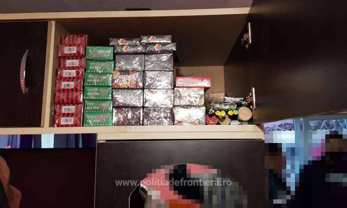 O descindere domiciliară a avut loc miercuri în comuna Vișina, în casa unui bărbat polițiștii de frontieră din cadrul Serviciului Teritorial al Poliției de Frontieră Olt al Inspectoratului Teritoriale al Poliției de Frontieră Giurgiu, sub coordonarea procurorului de caz din cadrul Parchetului de pe lângă Judecătoria Corabia, descoperind și confiscând peste 7.000 de articole pirotehnice.