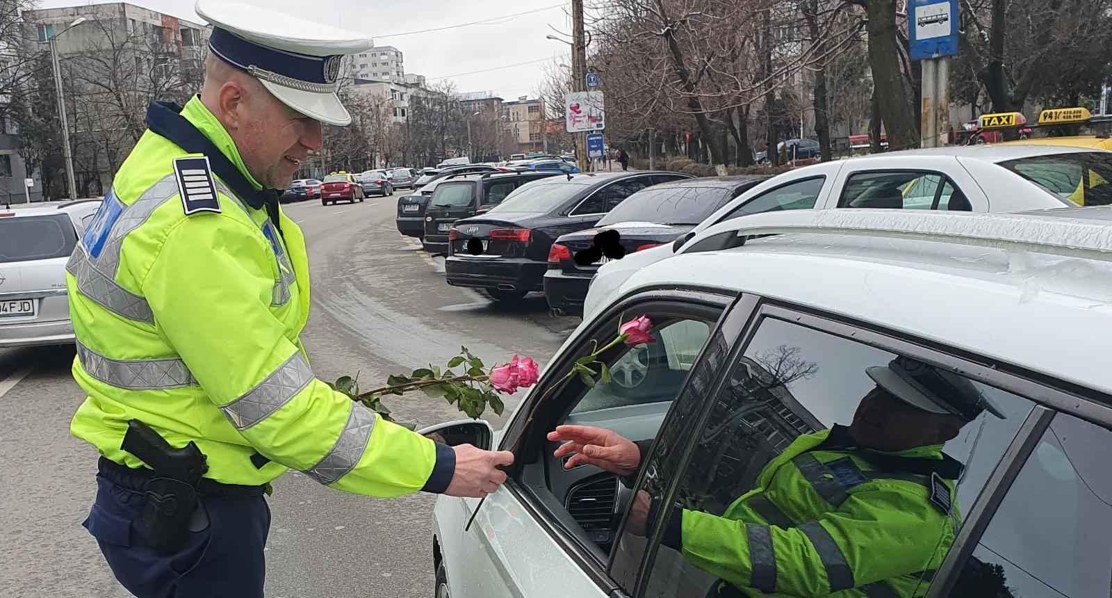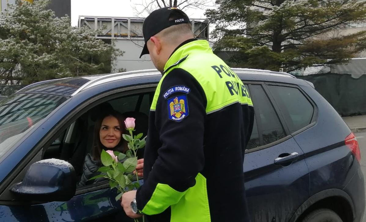 Aceștia au sancționat cu flori participantele la trafic care au trecut pe strada Crișan, zona intersecției cu strada Independenței, dar și pe strada Libertății. Reprezentantele sexului frumos oprite în trafic au fost impresionate de gestul făcut de polițiști și unele dintre ele au spus ca este pentru prima oară când au fost trase pe dreapta de un om al legii, acestea respectând întotdeauna regulile de circulație.