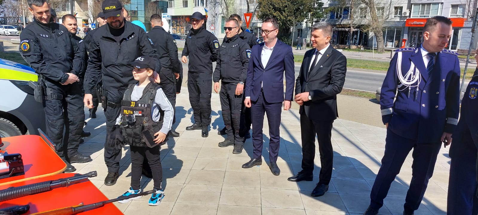 Și pentru slătinenii care au trecut prin fața Prefecturii Olt, polițiștii au avut pregătit un moment special. O parte dintre dotările Poliției, printre care laboratorul criminalistic, echipajul de educație rutieră, echipajul Poliției Animalelor, autospeciale ale Serviciului Rutier și echipajul cu câine de urmă, dar și standuri cu materiale informative, au fost expuse aici și, ca de obicei, cei mai mici dintre vizitatori, precum și autoritățile, s-au oprit la autospeciala și armamentul Serviciului pentru Acțiuni Speciale Olt, pe care luptătorii le folosesc la intervenții.