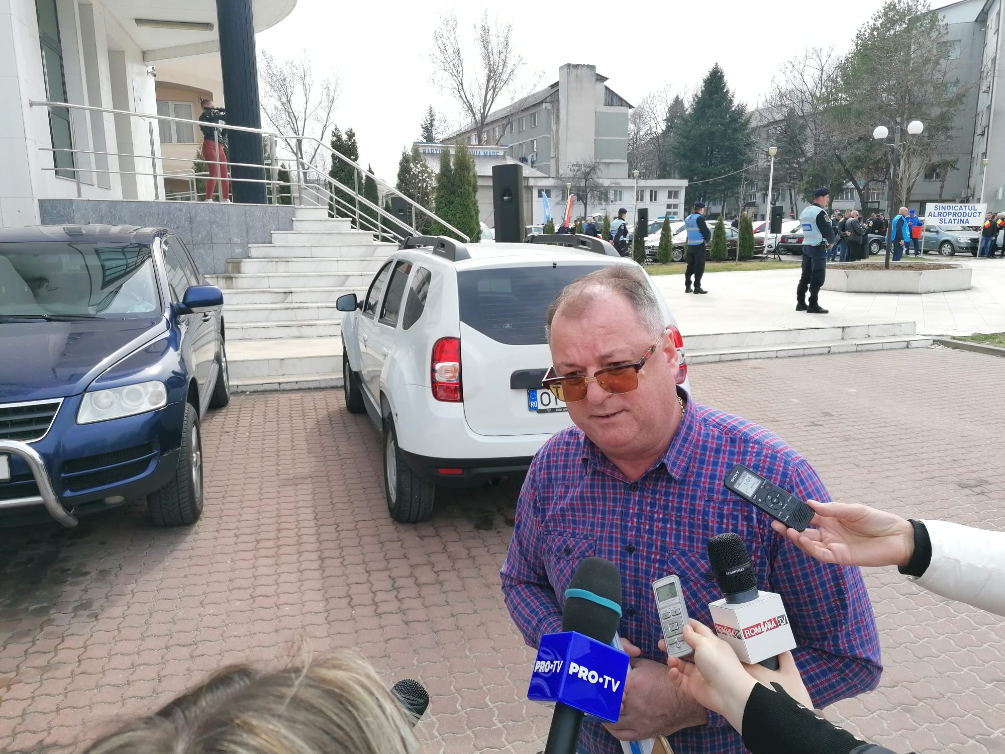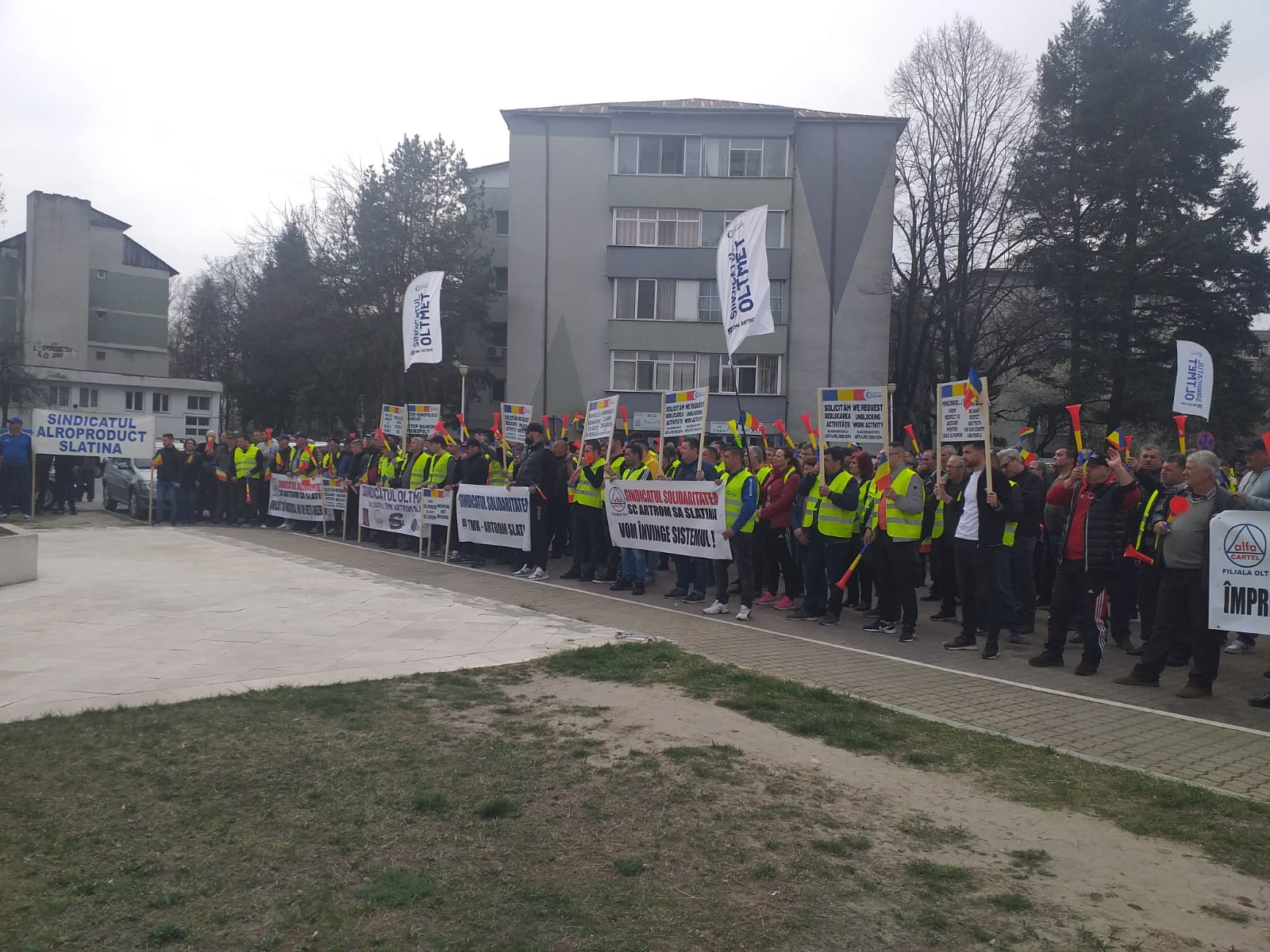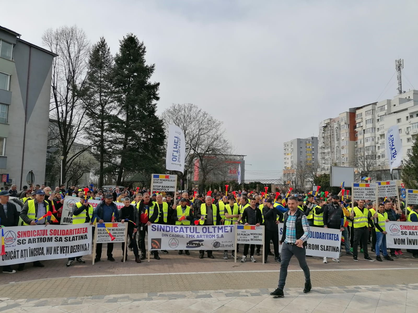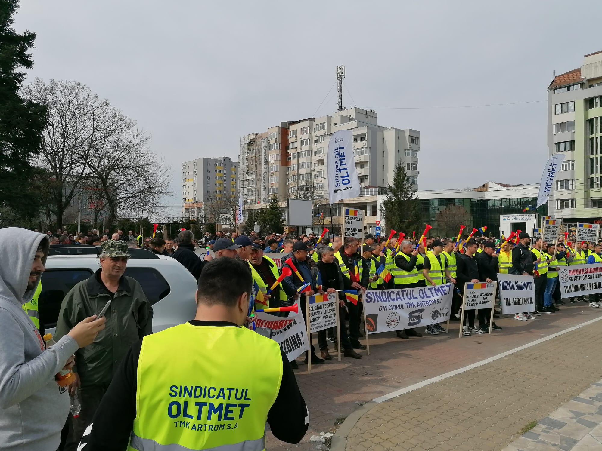 Au fost sindicaliști nu doar din interiorul fabricii TMK Artrom, ci și ai altor societăți de pe platforma industrială a municipiului Slatina, și nu numai. Printre ei a fost și Cristel Ioțu, președintele Confederației Națională Sindicală „Cartel ALFA” – Uniunea Sindicală Teritorială Filiala Olt, care a spus că principala revendicare a protestatarilor este ridicarea sancțiunilor care se referă clar la deblocarea tuturor conturilor.