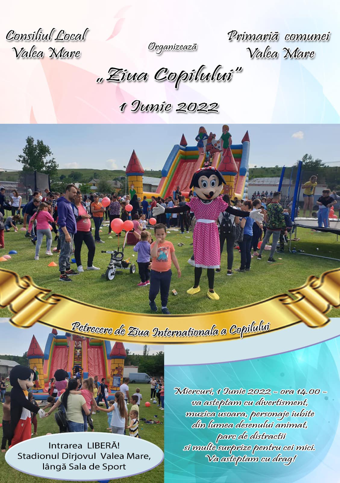 După doi ani de absență din cauza pandemiei COVID-19, Primăria și Consiliul Local Valea Mare, în frunte cu primarul George Daniel Iancu organizează miercuri, 1 iunie, cu începere de la ora 14:00, o nouă ediție a evenimentului „Ziua Copilului”.