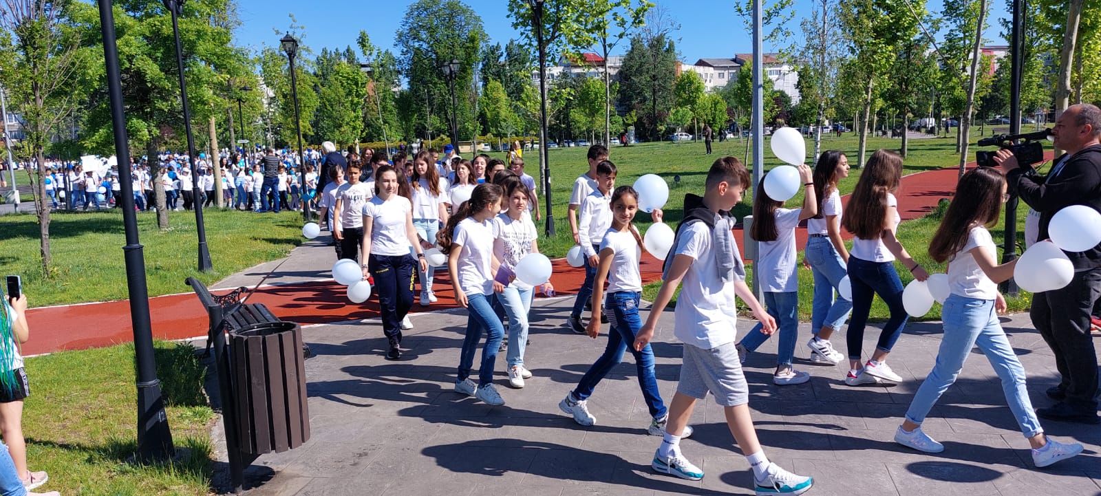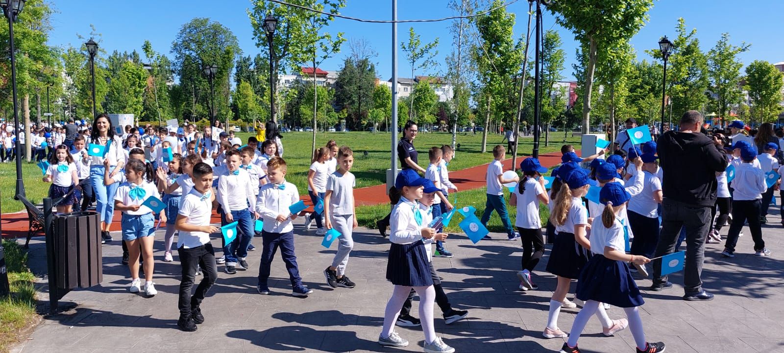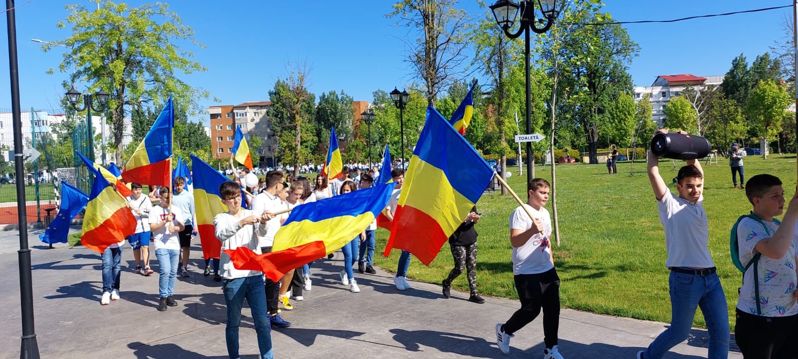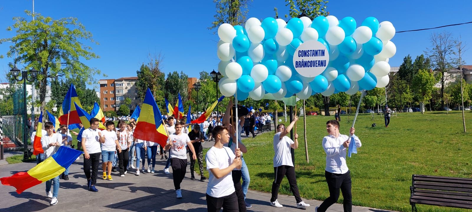 Școlarii au plecat din curtea unității de învățământ având în mâini pancarte, steaguri și baloane, au trecut prin fața Inspectoratului Școlar Județean Olt, apoi au străbătut mai multe artere ale Slatinei pentru ca ajunge în punctul final care a fost Parcul Tineretului. Daniel Noajă, directorul unității școlare, împreună cu două eleve, au ținut să ofere edilului Emil Moț și celor doi viceprimari plachete aniversare și să le mulțumească pentru sprijinul financiar acordat an de an pentru a oferi copiilor condiții de studiu la standarde europene.