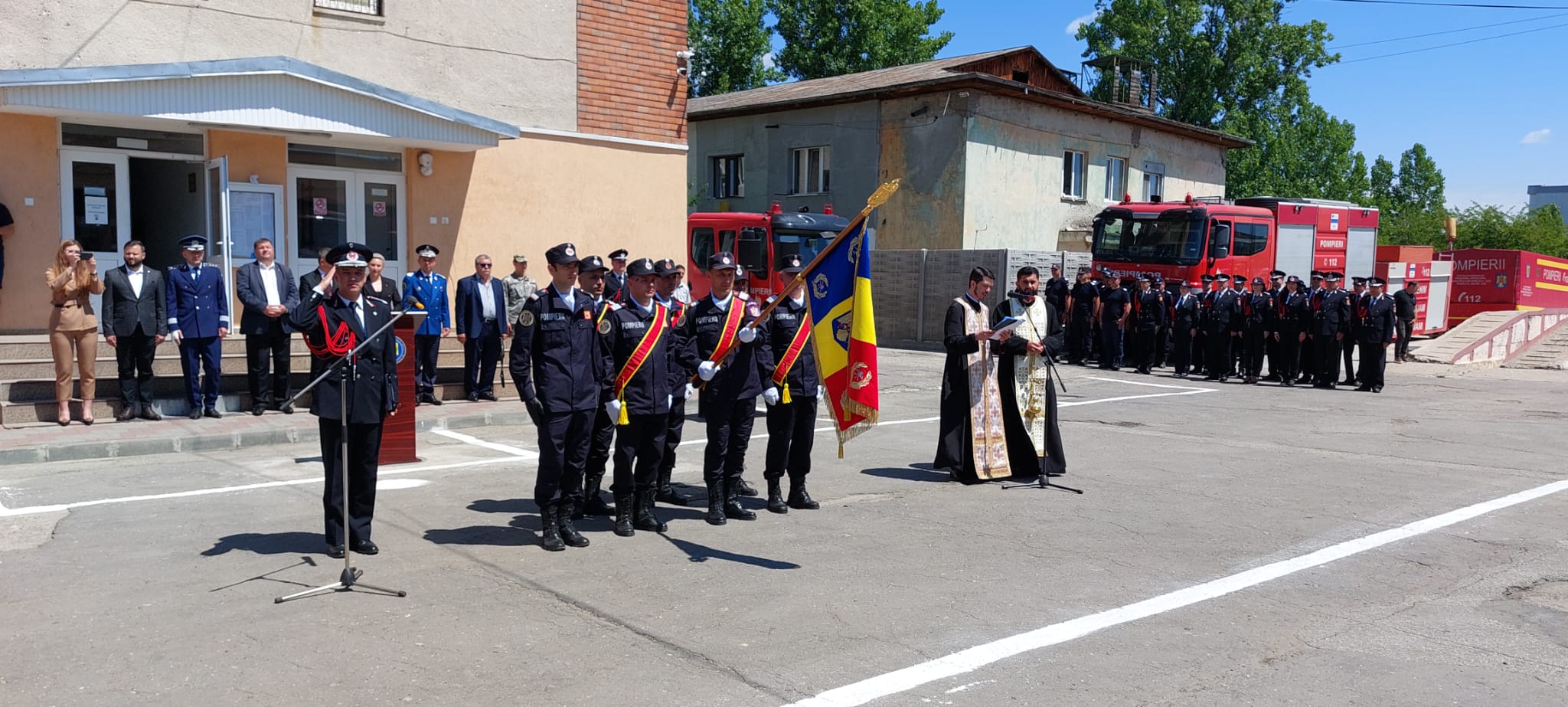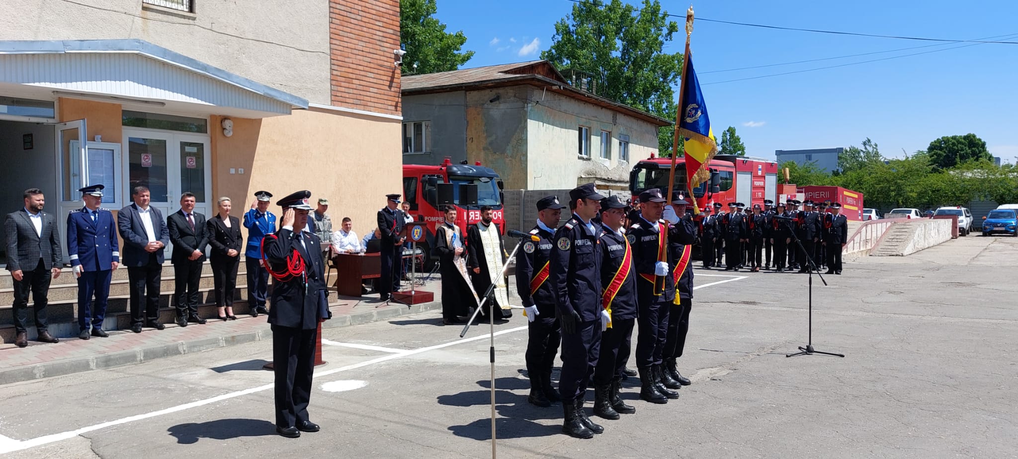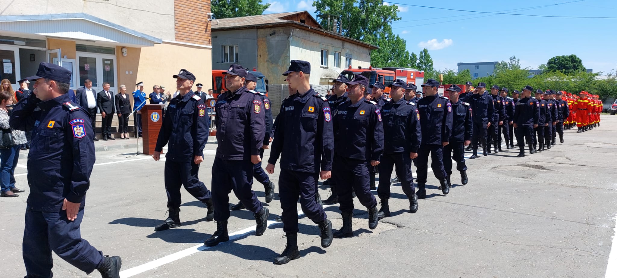 „Eu! Soldat Gheorghe, soldat Andronache, soldat Iova, soldat Gheorghișor, solda Burugiu, soldat Stănică, soldat Niculae, soldat Guguci, soldat Popescu, soldat Costea, soldat Florescu, soldat Stancu, soldat Stancu, soldat Găină! Jur! Credință Patriei mele, România! Jur! Să-mi apăr țara, chiar cu prețul vieții! Jur! Să respect Constituția, legile țării și regulamentele militare! Așa să-mi ajute Dumnezeu! Unul dintre noii angajați ai inspectoratului a spus că i-a plăcut mereu ceea ce fac pompierii, de aceea și-a ales și el această meserie”, a fost jurământul depus de noii pompieri.