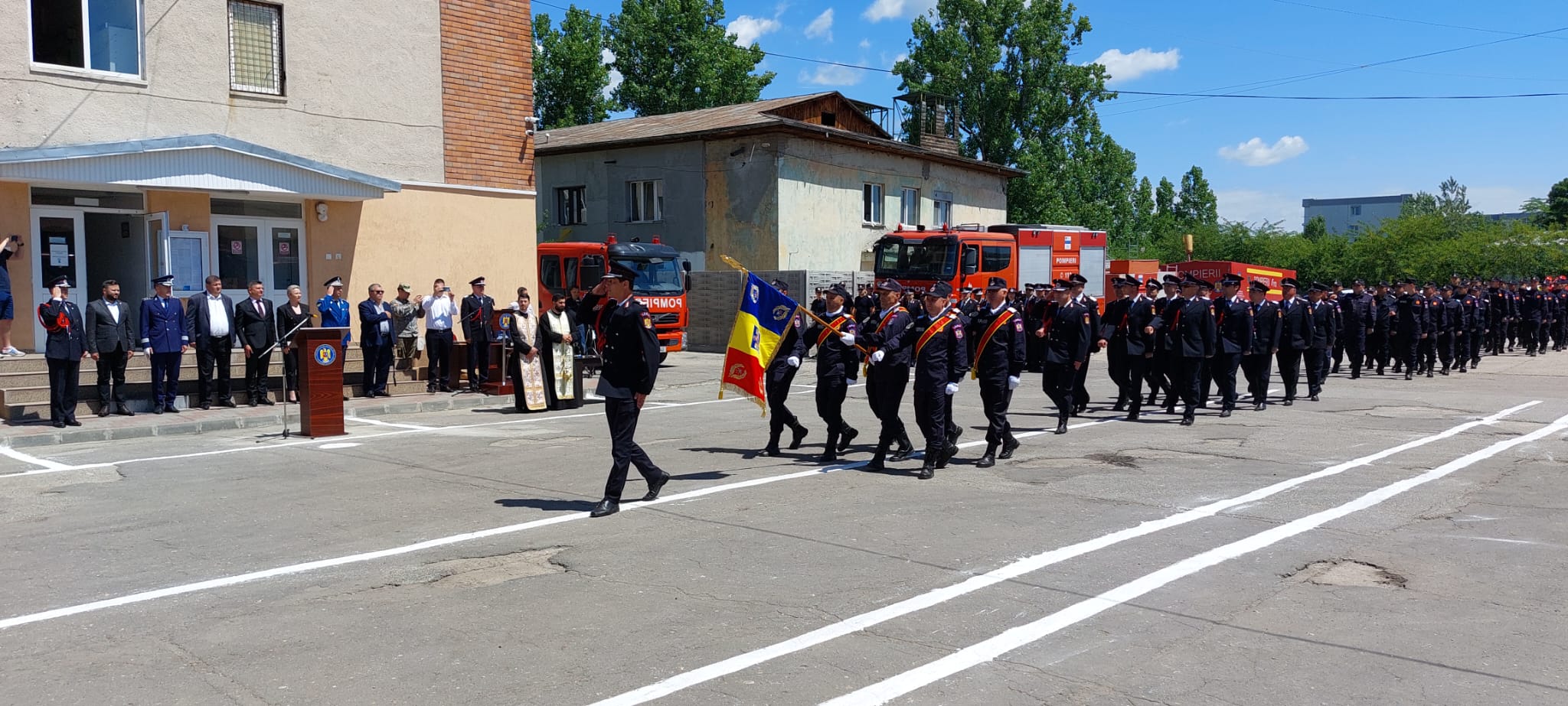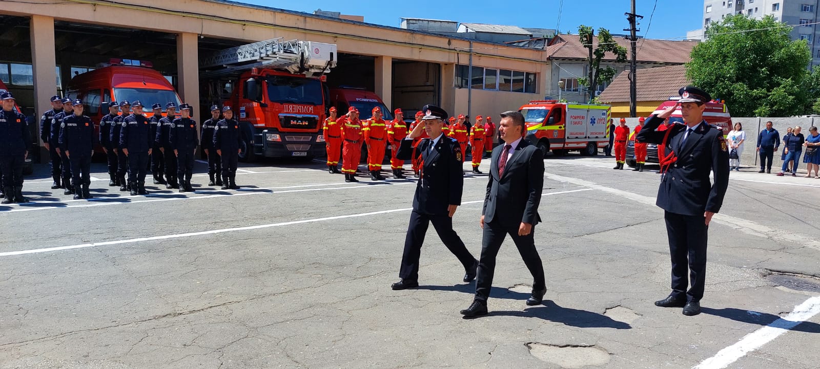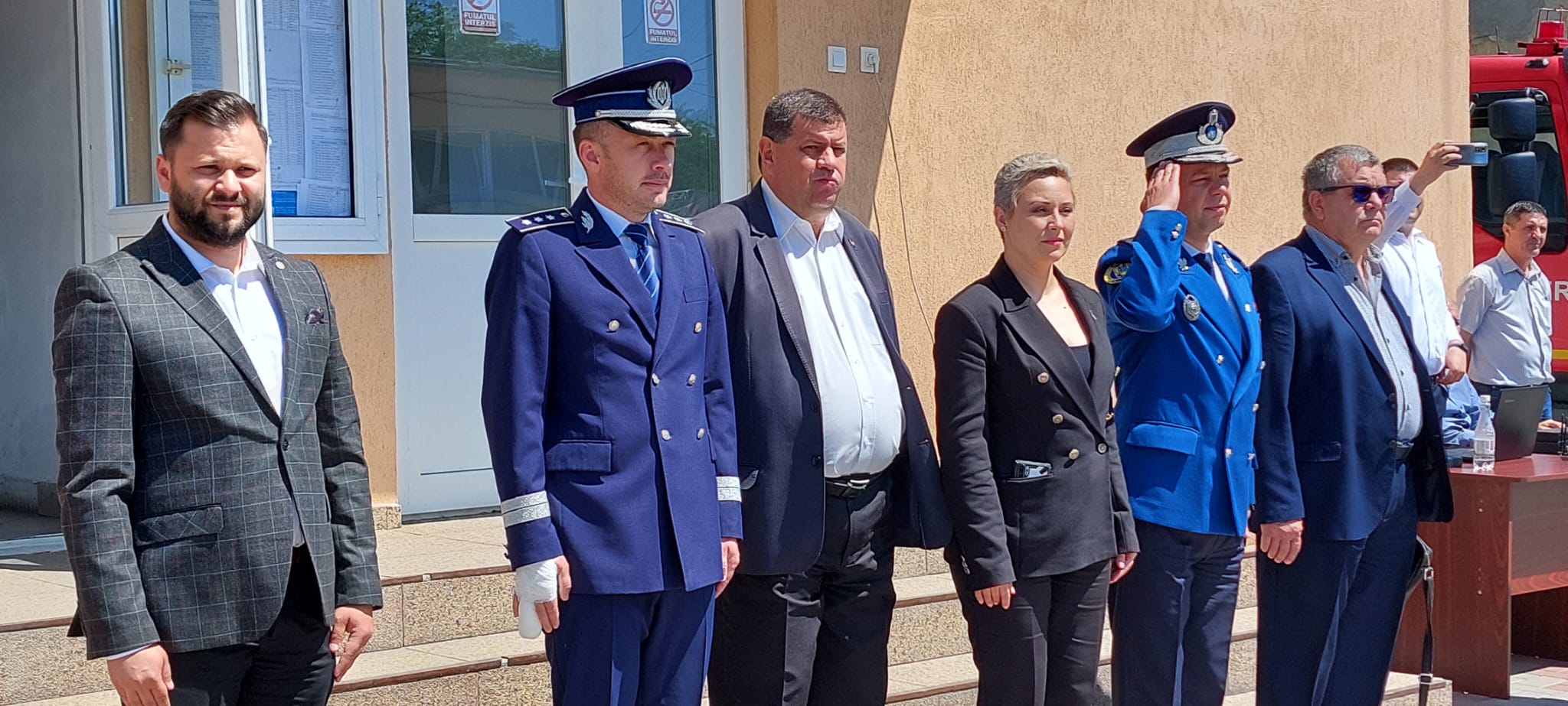 „Eu! Soldat Gheorghe, soldat Andronache, soldat Iova, soldat Gheorghișor, solda Burugiu, soldat Stănică, soldat Niculae, soldat Guguci, soldat Popescu, soldat Costea, soldat Florescu, soldat Stancu, soldat Stancu, soldat Găină! Jur! Credință Patriei mele, România! Jur! Să-mi apăr țara, chiar cu prețul vieții! Jur! Să respect Constituția, legile țării și regulamentele militare! Așa să-mi ajute Dumnezeu! Unul dintre noii angajați ai inspectoratului a spus că i-a plăcut mereu ceea ce fac pompierii, de aceea și-a ales și el această meserie”, a fost jurământul depus de noii pompieri.