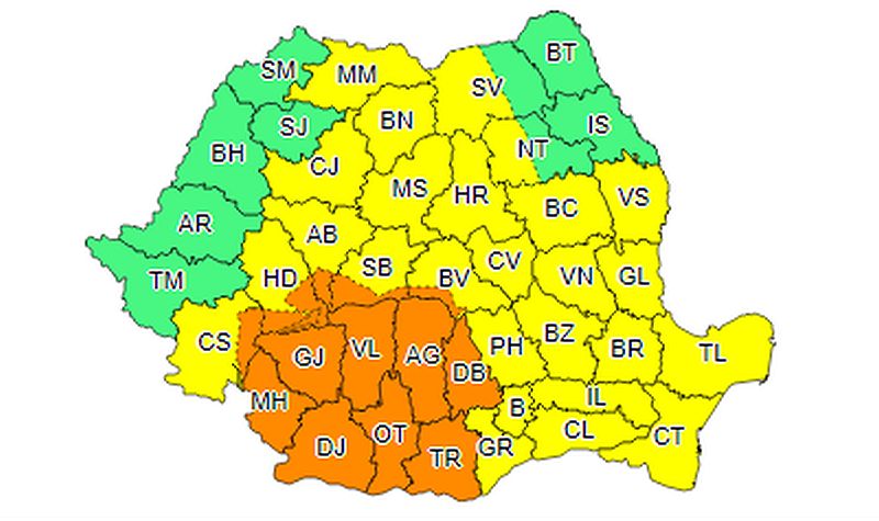 Cealaltă atenționare este de cod galben de instabilitate atmosferică accentuată și va afecta, local, nordul țării, respectiv județele Maramureș, Bistrița Năsăud, dar și zona de munte a județelor Suceava și Neamț.