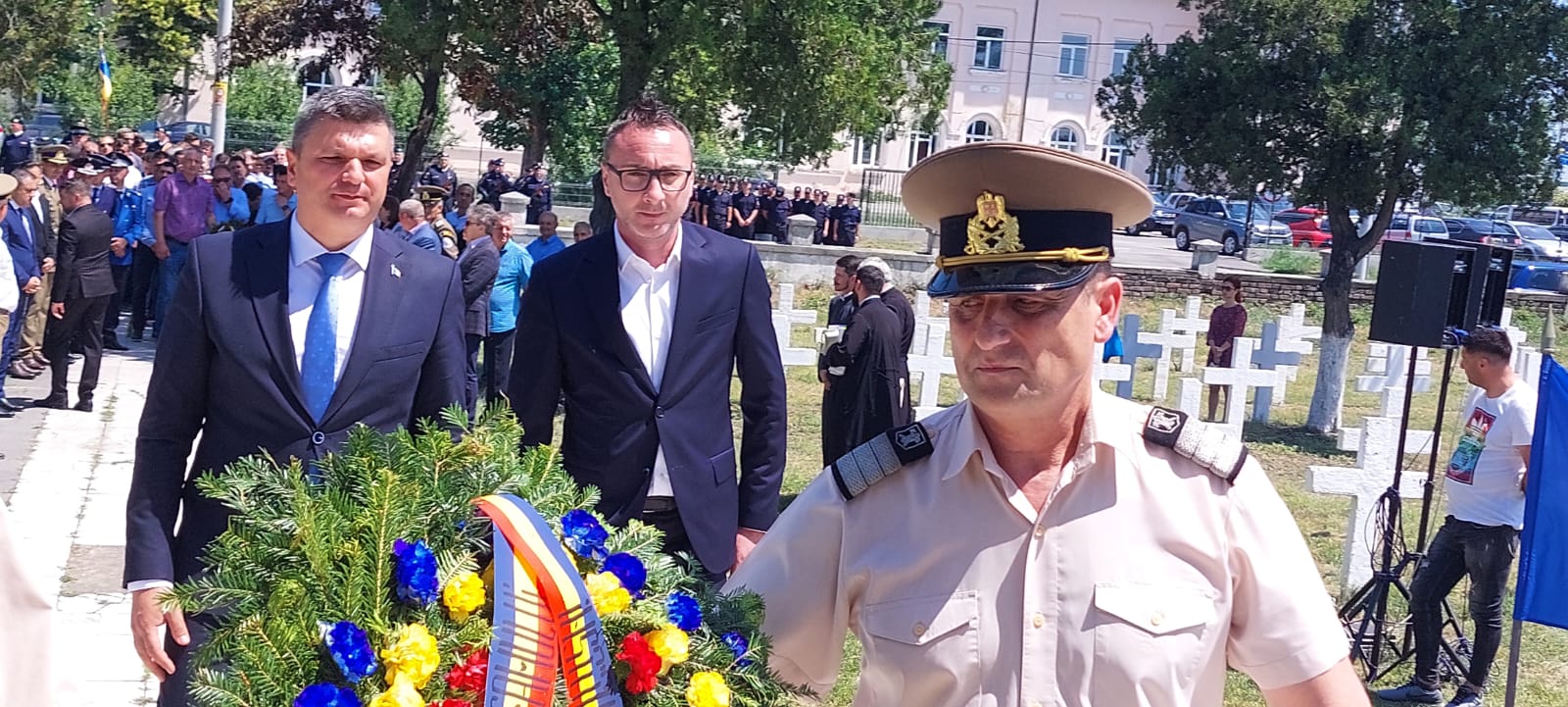 Unul dintre cei care au adresat o scurtă alocuțiune în fața celor prezenți a fost prefectul Homorean: „Sărbătoarea de astăzi are menirea de a-i omagia pe cei care, de-a lungul veacurilor și cu mari sacrificii, au creat o stare de spirit, un sentiment al eroismului şi al dăruirii de sine. Jertfa ostașilor pe care îi cinstim și îi onorăm astăzi, acești adevărați eroi care şi-au demonstrat capacitatea de luptă, dârzenia și spiritul de sacrificiu în luptă cu cei care au încercat să ne cotropească țara, va rămâne veșnic neuitată căci, alături de simbolurile naţionale, eroii ne legitimează în lume. Istoria noastră este plină de oameni care au murit pentru a servi interesul naţional, cei mai mulţi dintre ei rămaşi necunoscuţi. Avem datoria, peste timp, să le îndeplinim dorinţa de a trăi într-o ţară demnă. Avem datoria sfântă să ne cinstim eroii şi trecutul în zilele şi prin faptele noastre de azi și de mâine. În același timp, ca cea mai mare dovadă de respect pentru memoria înaintașilor eroi, avem datoria de a îndemna generația de astăzi să cunoască istoria și să aprecieze exemplul de dăruire și sacrificiu al celor care și-au dat viața pentru idealurile noastre de astăzi. (…) Le închinăm tuturor eroilor români această zi de mare sărbătoare creștinească, după datina străbună și orânduirea Bisericii Ortodoxe Române, cu tot respectul cuvenit pe măsura sacrificiului lor suprem. (…) Odihnă în pace și veșnică pomenire eroilor români!”.