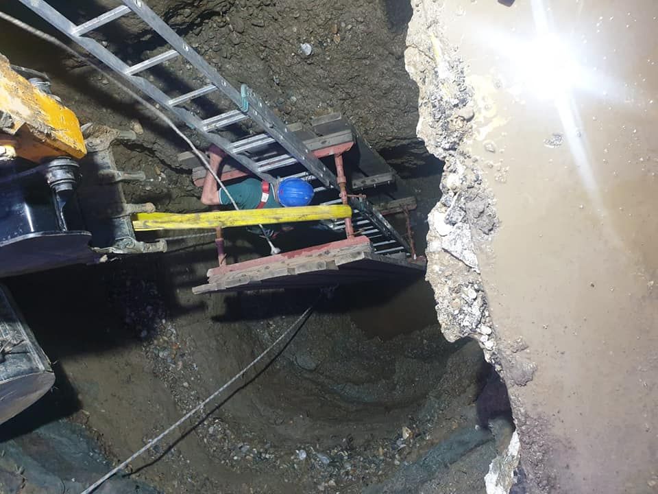 În momentul în care echipa de intervenție a CAO a început săpăturile pentru a ajunge la conductă, s-a constatat că materialele de umplere a terenului au fost luate de cantitatea mare de apă din subteran și că acolo se formase o cavernă, unde au căzut și resturile de asfalt și beton rezultate în urma săpăturilor.