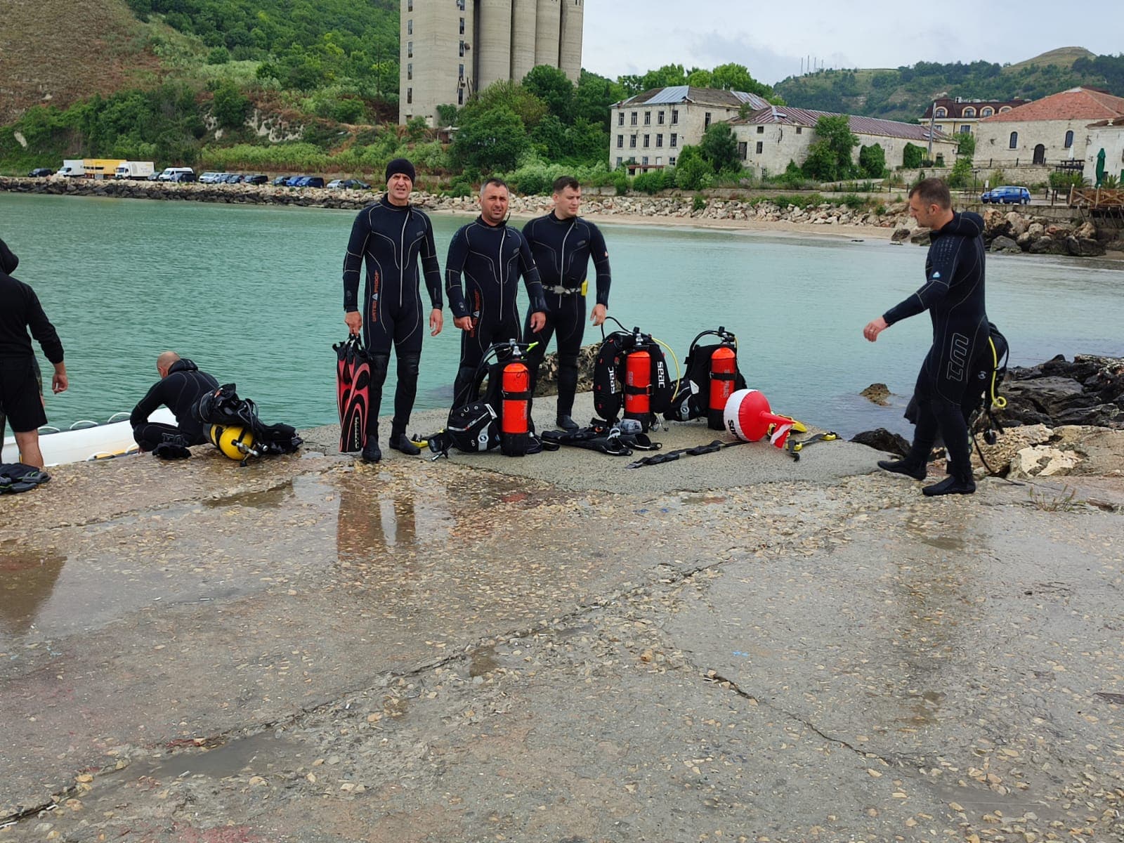 Marius, Sandu, Gabi, Marius și Tibi sunt cei cinci scafandri olteni ce fac pregătire alături de colegi din patru localități bulgare.