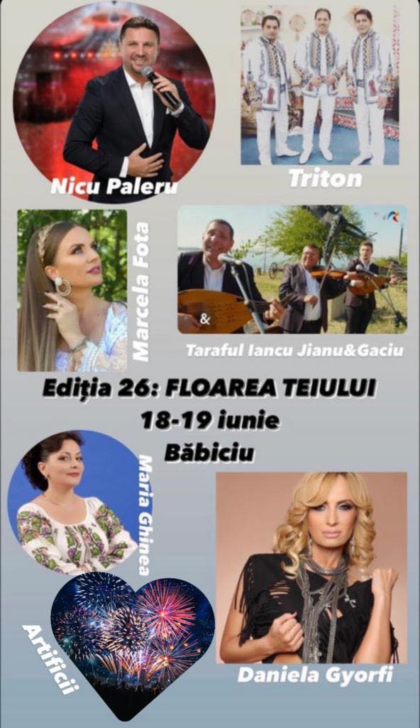 „După doi ani în care am fost restricționați de pandemie, iată că putem, în sfârșit, să sărbătorim «Floarea Teiului», ediția XXVI! Pentru a recupera edițiile pierdute, anul acesta, evenimentul se va desfășura în două zile: 18 – 19 iunie, în Băbiciu, culminând cu un mare spectacol și show de artificii, duminică de la ora 17:00”, este invitația pe care o adresează băbicenilor Florin Negrilă, primarul localității din sudul județului Olt.