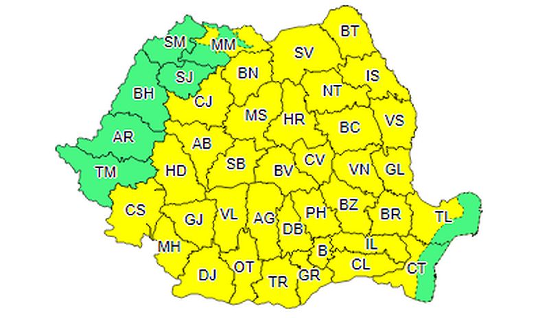 „În Transilvania, Moldova, Oltenia, Muntenia și local în Dobrogea și Banat, vor fi perioade cu instabilitate atmosferică accentuată. Vor fi descărcări electrice, intensificări ale vântului și vijelii (viteze la rafală de peste 55…75 km/h), averse torenţiale și izolat grindină. Noaptea aria acestor fenomene va fi în restrângere treptată. Cantitățile de apă vor depăși 20…30 l/mp și izolat 40 l/mp”, transmit meteorologii.