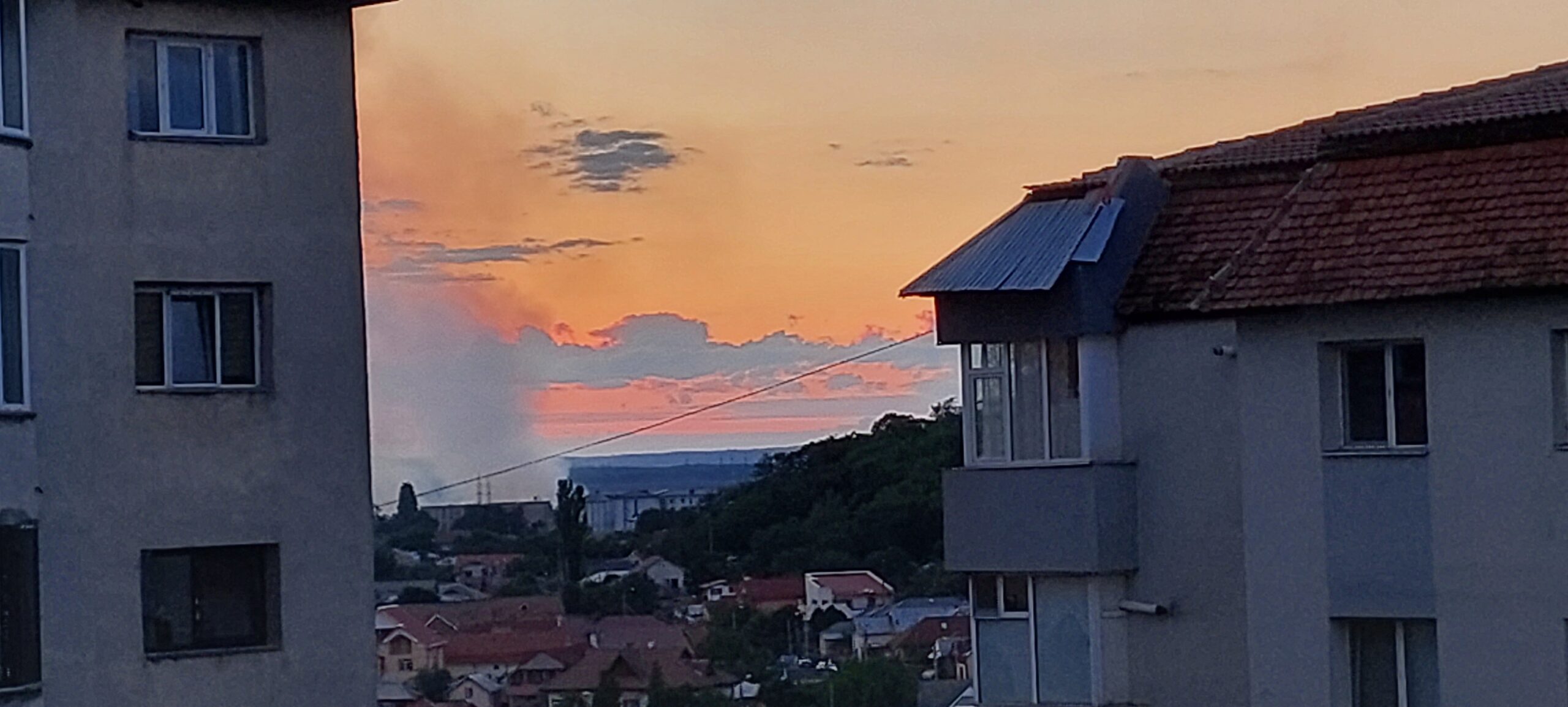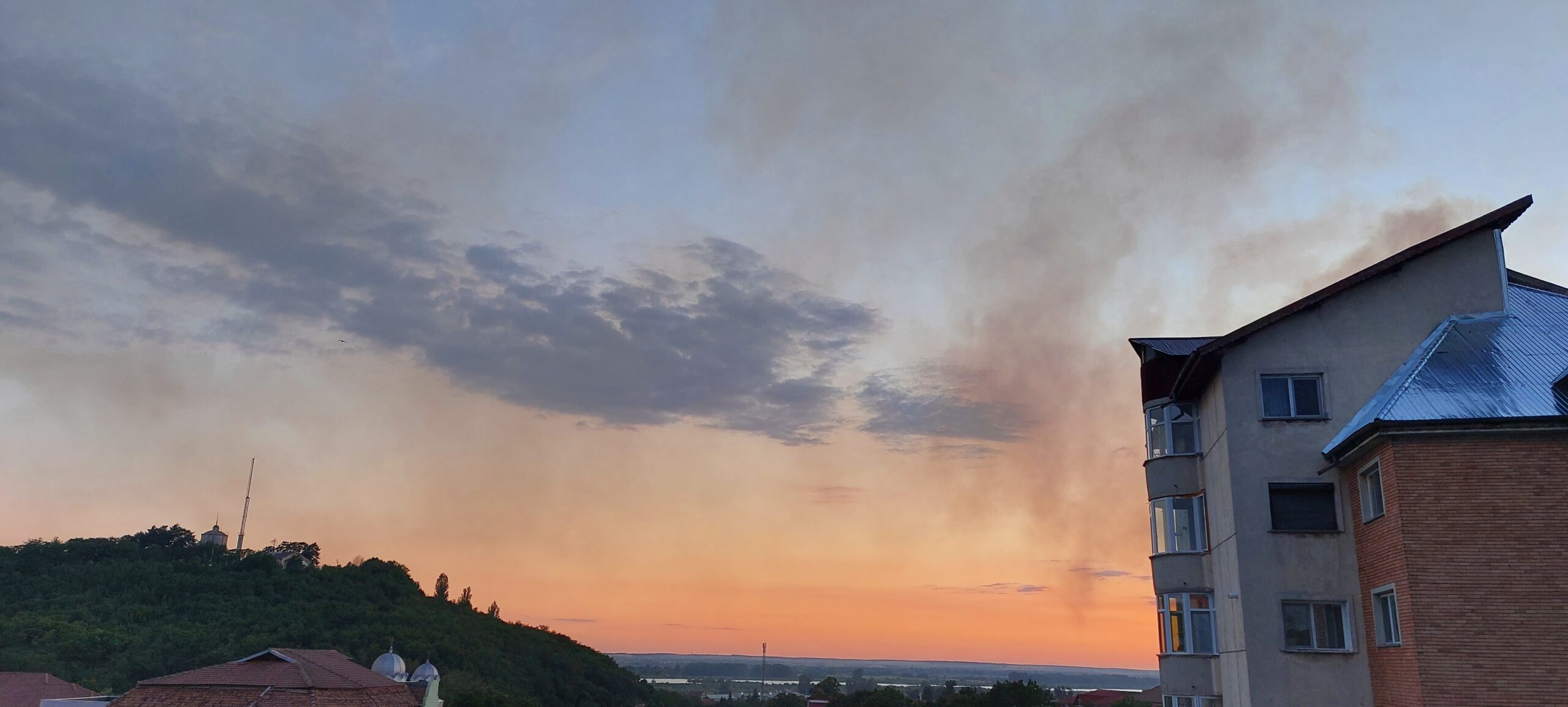 Din cauza incendiului, fumul dens a ajuns și deasupra Slatinei, în partea de jos a municipiului.