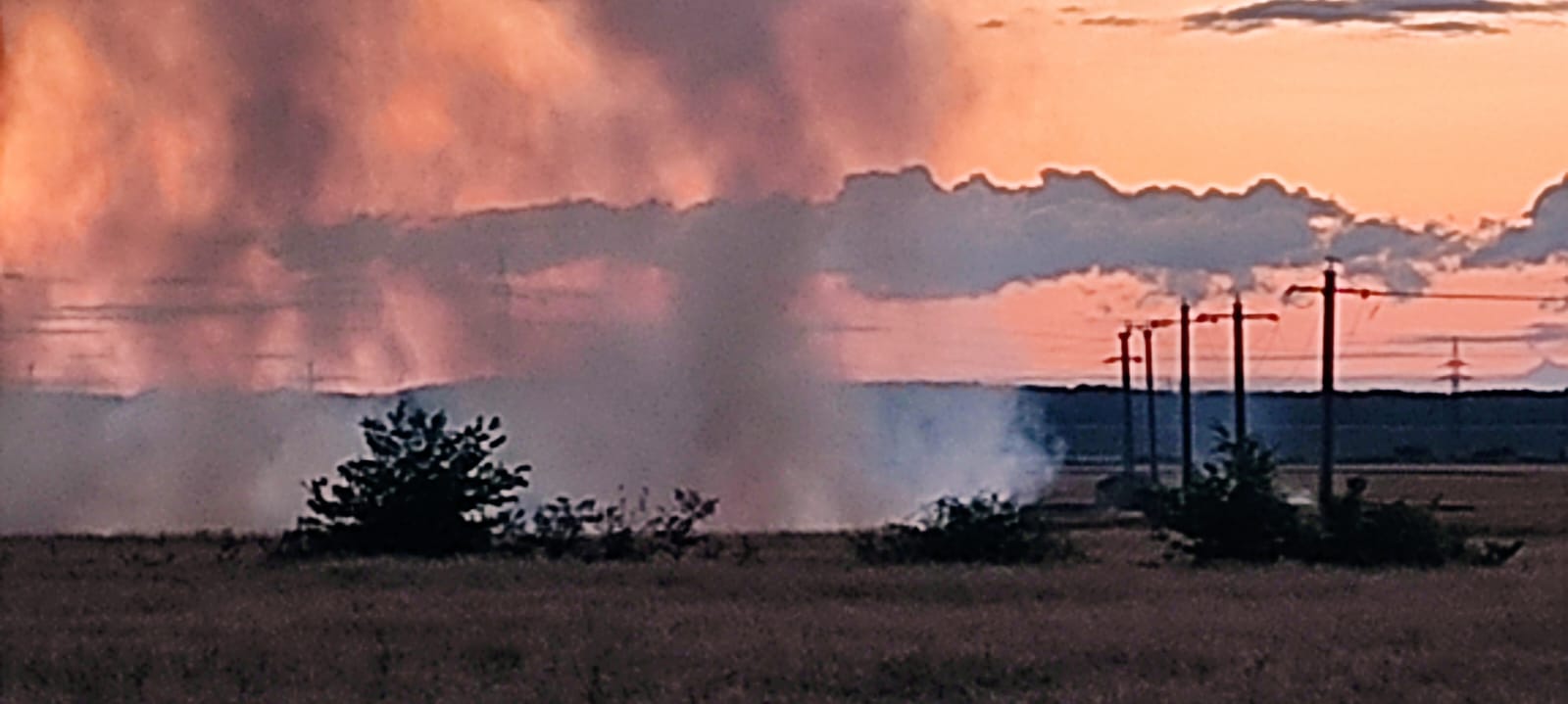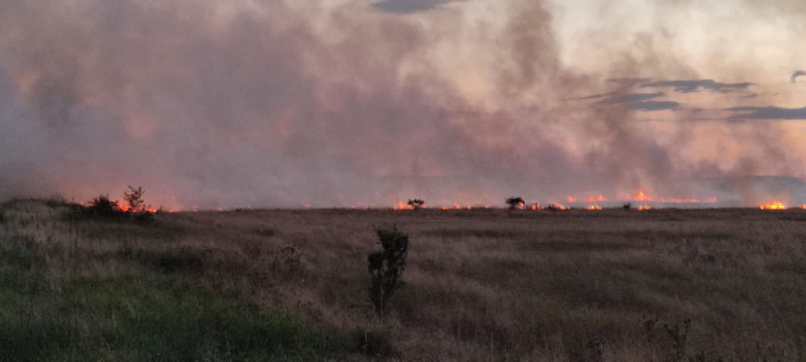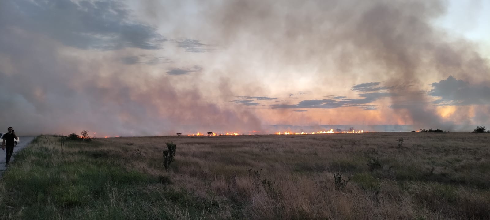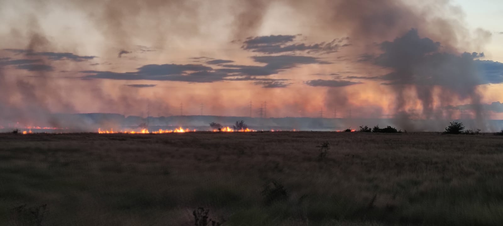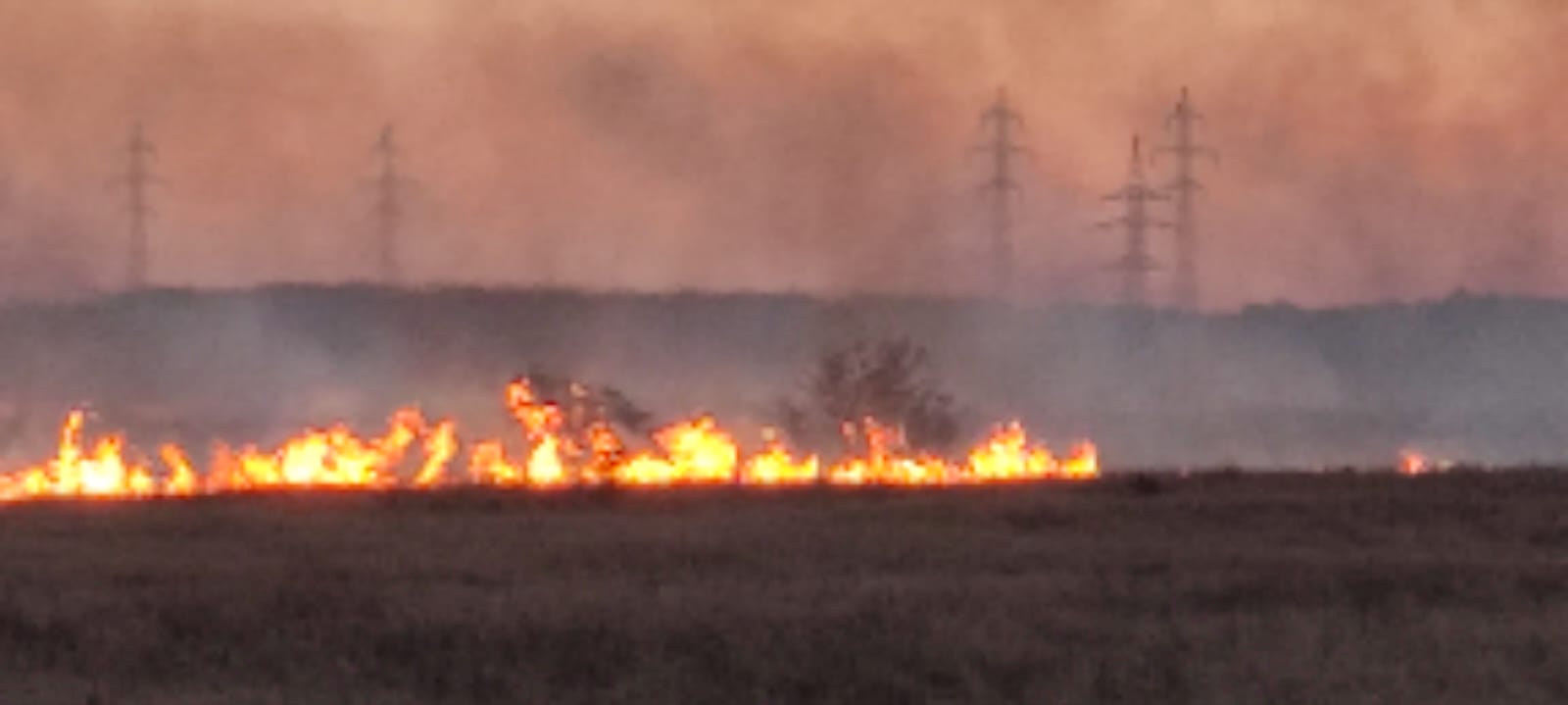 Mai multe echipaje de salvatori sunt la fața locului pentru a stinge incendiul puternic ce a cuprins zece hectare de vegetație uscată, un lan de grâu, pe o suprafață de un hectar, dar și la lăstăriș și mărăciniș.