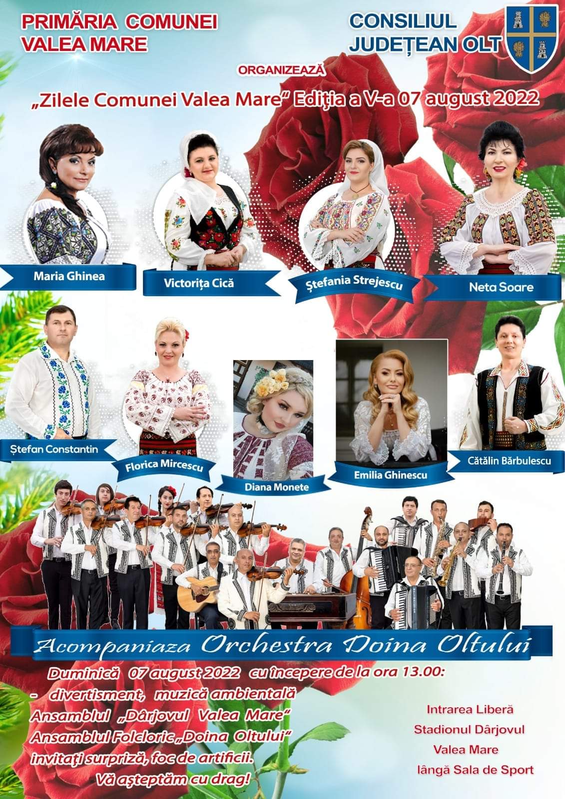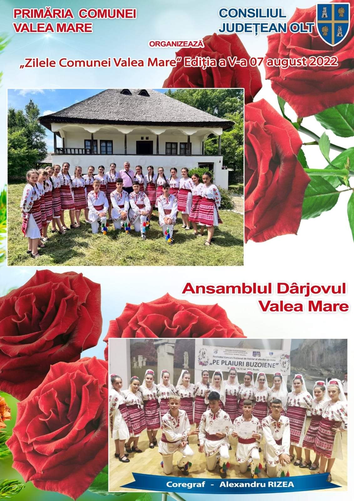 Evenimentul cultural va debuta la ora 13:00 a zilei de duminică, 7 august, cu divertisment și muzică ambientală, însă pe scena special amenagjată pe stadion vor urca și Ansamblul Folcloric „Dârjovul Valea Mare”, al cărui coregraf este Alexandru Rizea, dar și Ansamblul Folcloric „Doina Oltului” de la Slatina și alți invitați surpriză.