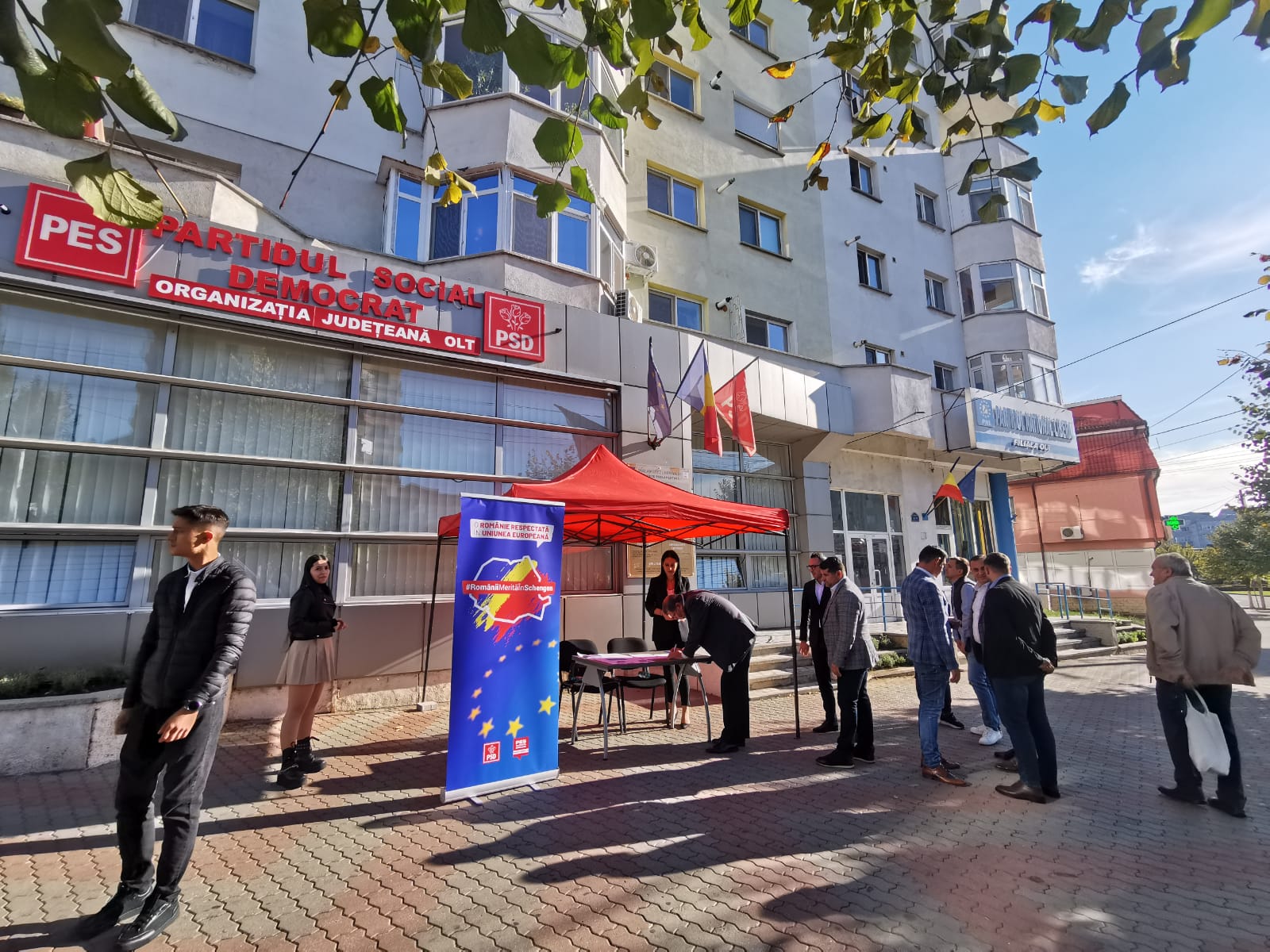 27 septembrie este ultima zi în care cortul unde se strâng semnături pentru intrarea României în Schengen va fi amplasat în fața sediului PSD de Olt din Slatina.