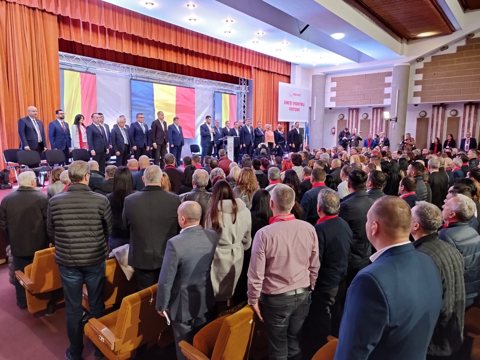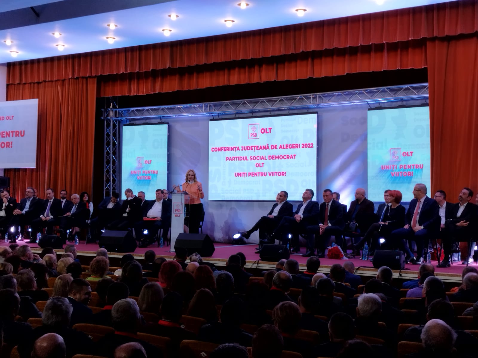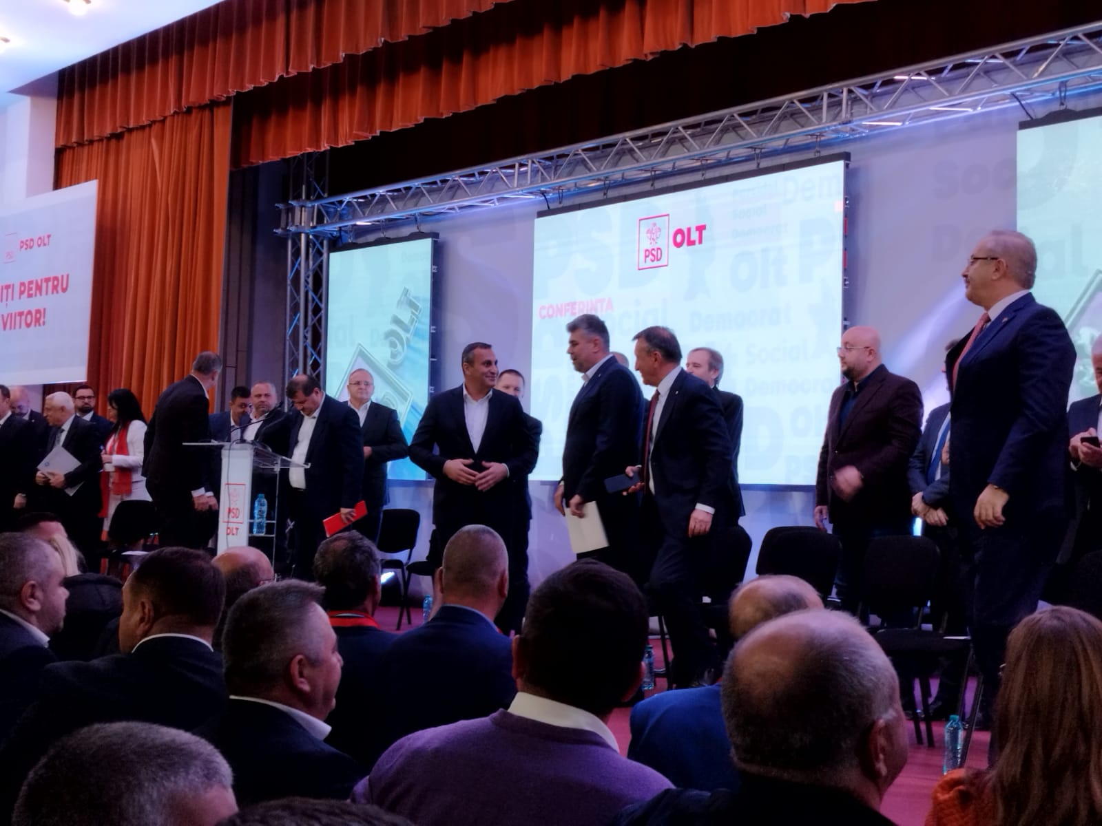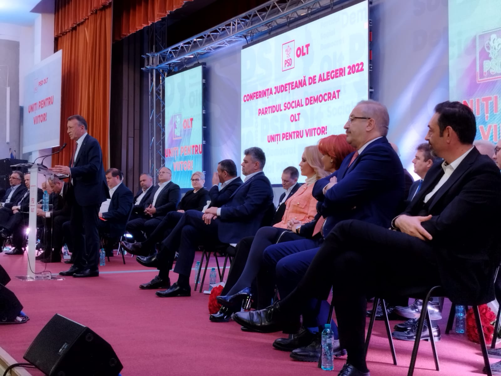 După intonarea imnului de stat al României, rând pe rând, PSD-iștii de la Centru au vorbit pe scenă în fața social democraților de la Olt și au lăudat activitatea președintelui Marius Oprescu din ultimii patru ani, dar și a predecesorului său Paul Stănescu, senator de Olt și secretar general al PSD, care a fost președinte al organizației județene timp de opt ani.