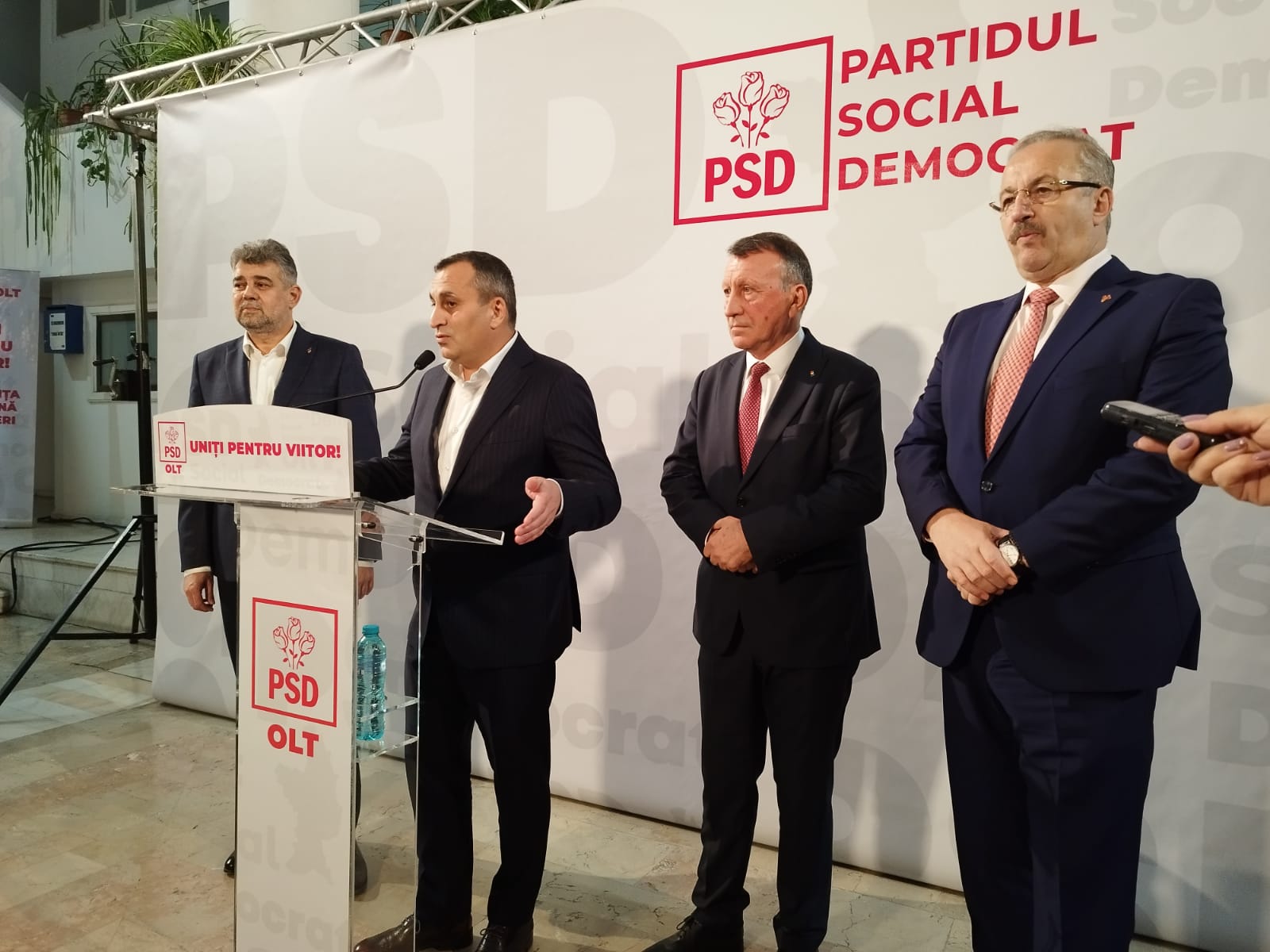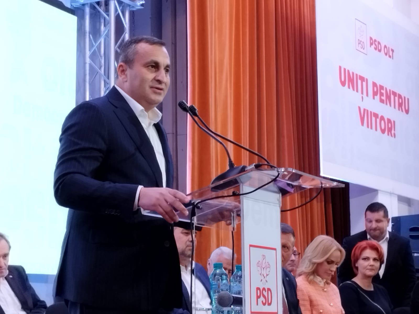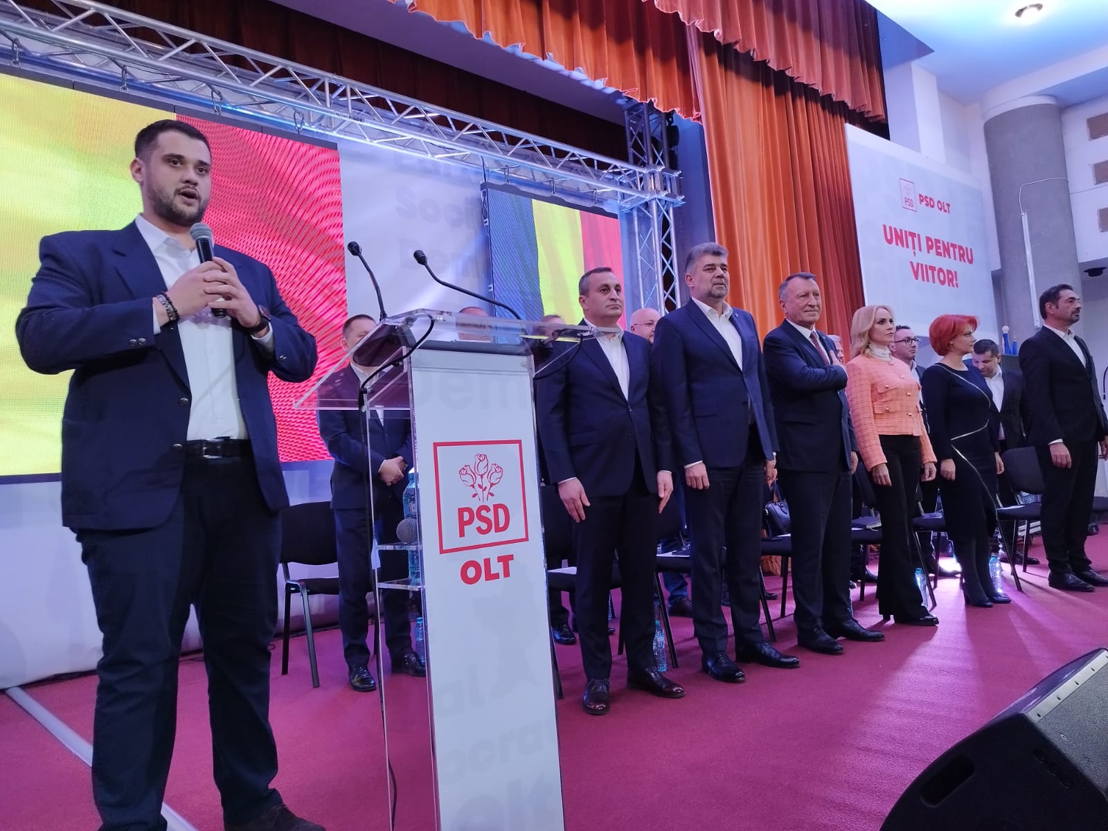 „Marius a reușit, la nivelul județului, să formeze o echipă puternică. Eu sunt mândru de colegii mei de la Olt, toată echipa de la București a venit astăzi, suntem cu toții alături de ei și sper să facă numai lucruri bune pentru oltenii noștri, pentru că aceasta este ținta organizațieiSlognul Uniți pentru viitor est eun slogan extraordinar. Îi spuneam lui Marius că trebuie să aibă grijă că trebuie să vină cineva și după ei, trebuie să fie o continuitate în tot ceea ce faci. Am câștigat alegerile la Olt, pentru că oamenii au simțit respectul nostru, am încercat, de fiecare dată să facem mai mult în infrastructură, sănătate, ducație, un trai mai bun pentru toată lumea. Asta au simțit oltenii noștri și ne-au votat în marea lor majoritate. Dragi colegi, la nivel de centru vreau să vă spun, așa cum este și la Olt, avem o echipă foarte bună, condusă de președintele nostru, condusă de Marcel Ciolacu. Nu a fost ușor, unul de la Buzău, altul de la Olt, a fost complicat, nu aveam experiența necesară, pentru că este la un nivel. A venit Gabi Firea lângă noi, Vasile Dâncu și alți colegi, ușor, ușor. Îmi place să spun ce zicea Marcel Ciolacu, partidul nostru arăta ca un tren deraiat într-o gară”, a declarat secretarul general al PSD.