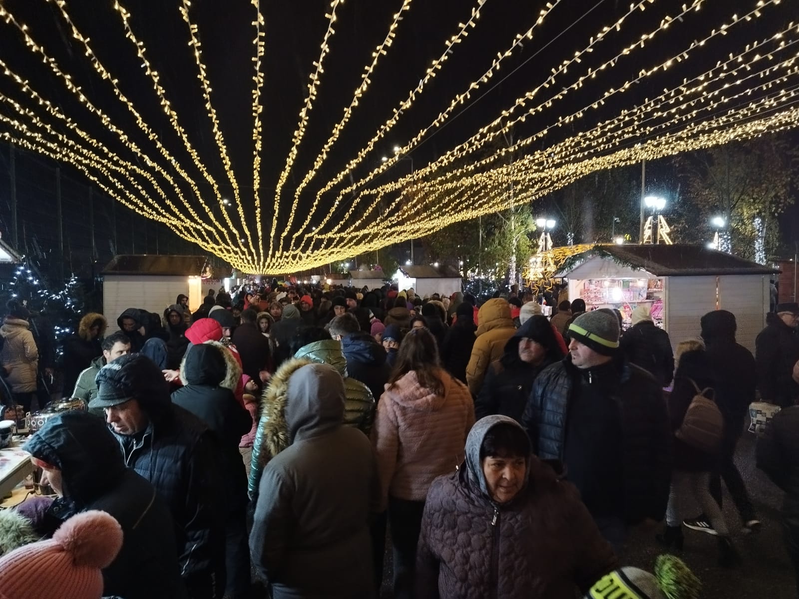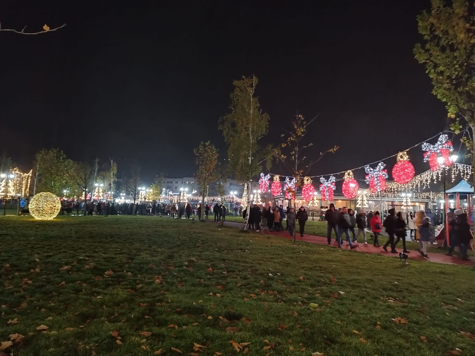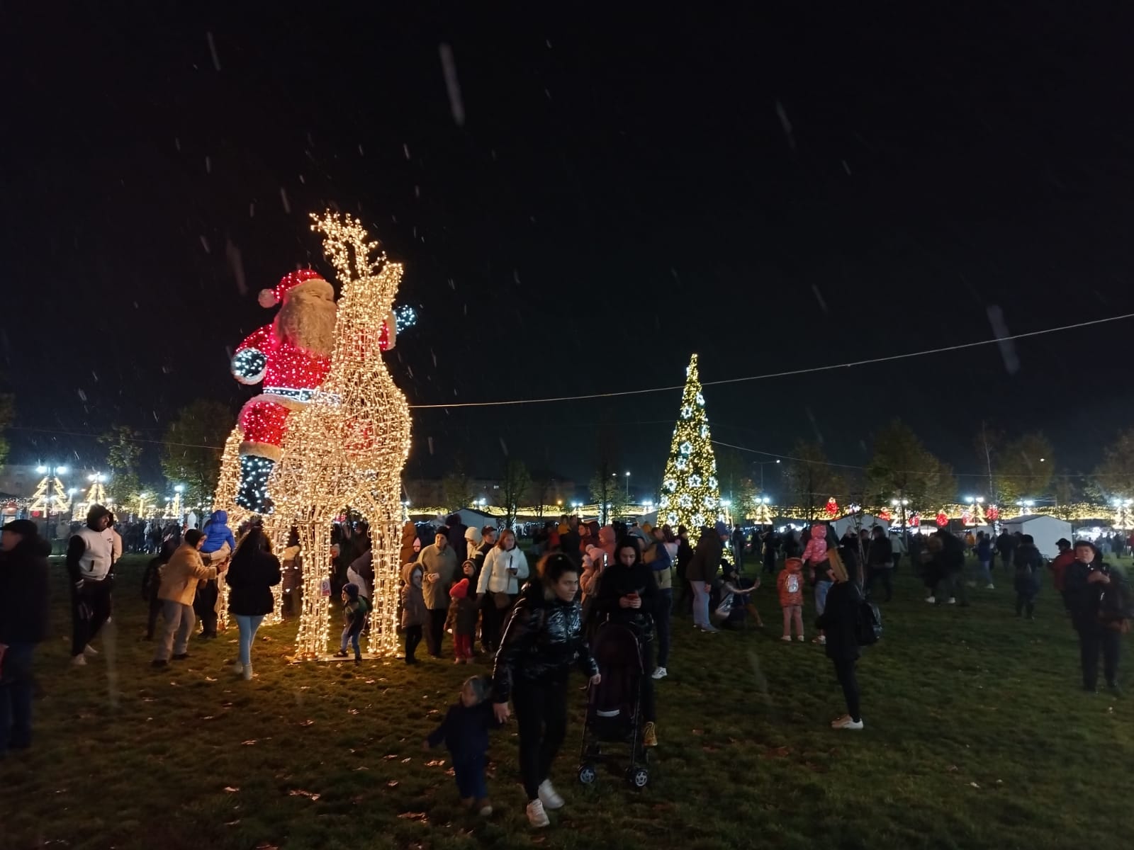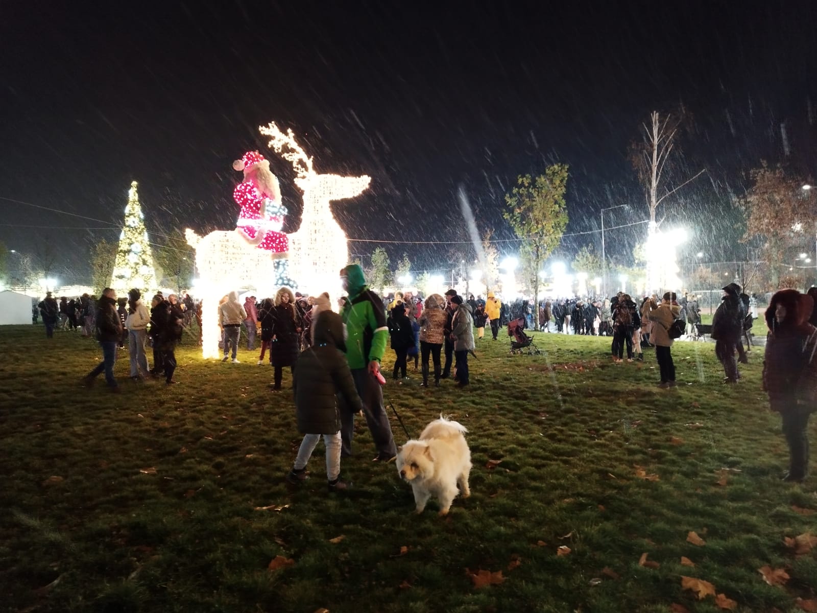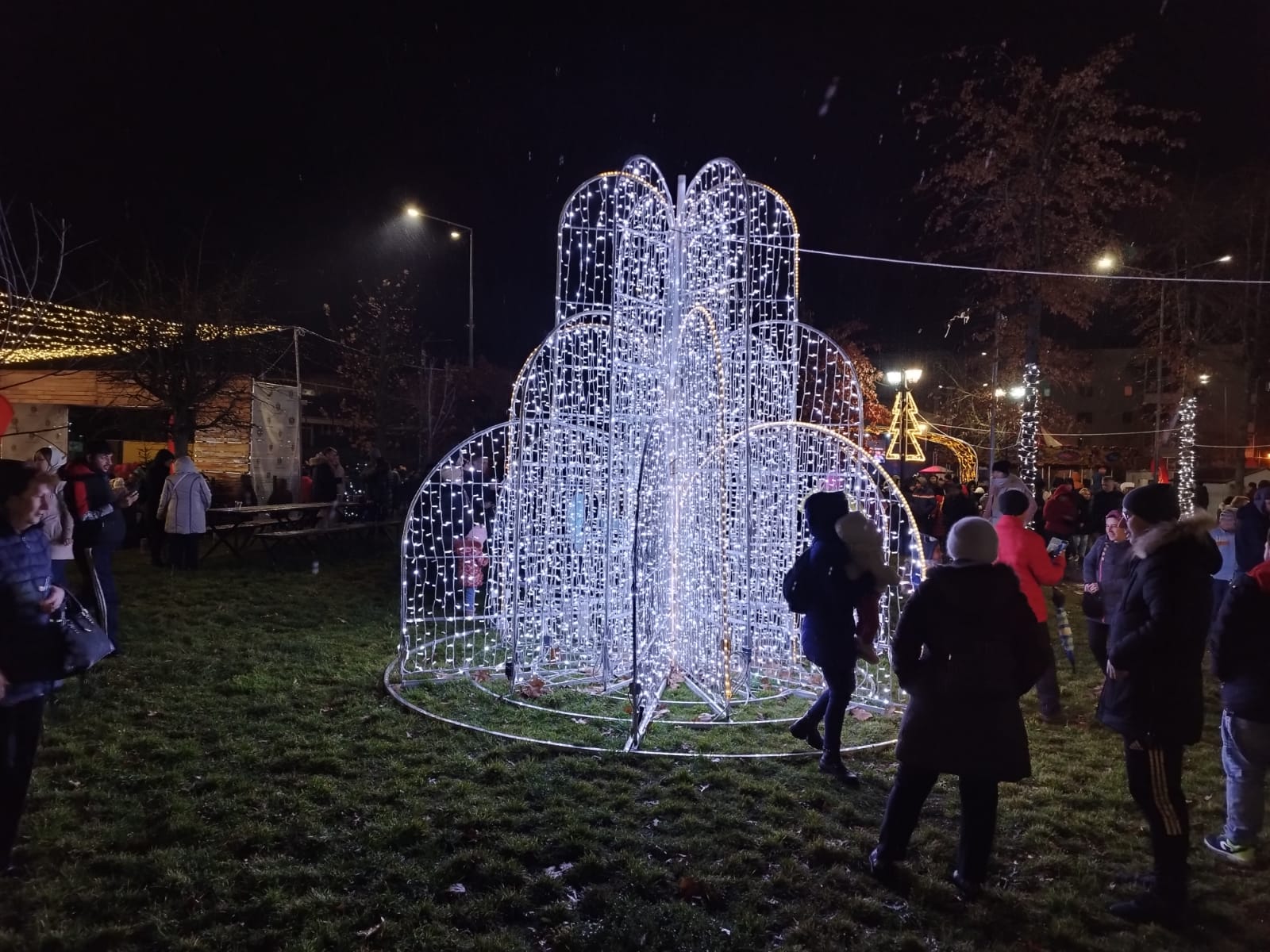 După ce au fost aprinse și instalațiile multicolore, majoritatea noi în parcul de lângă gară, miile de oameni prezente la deschiderea Târgului de Crăciun nu au existat să-și facă fotografii printre acestea.