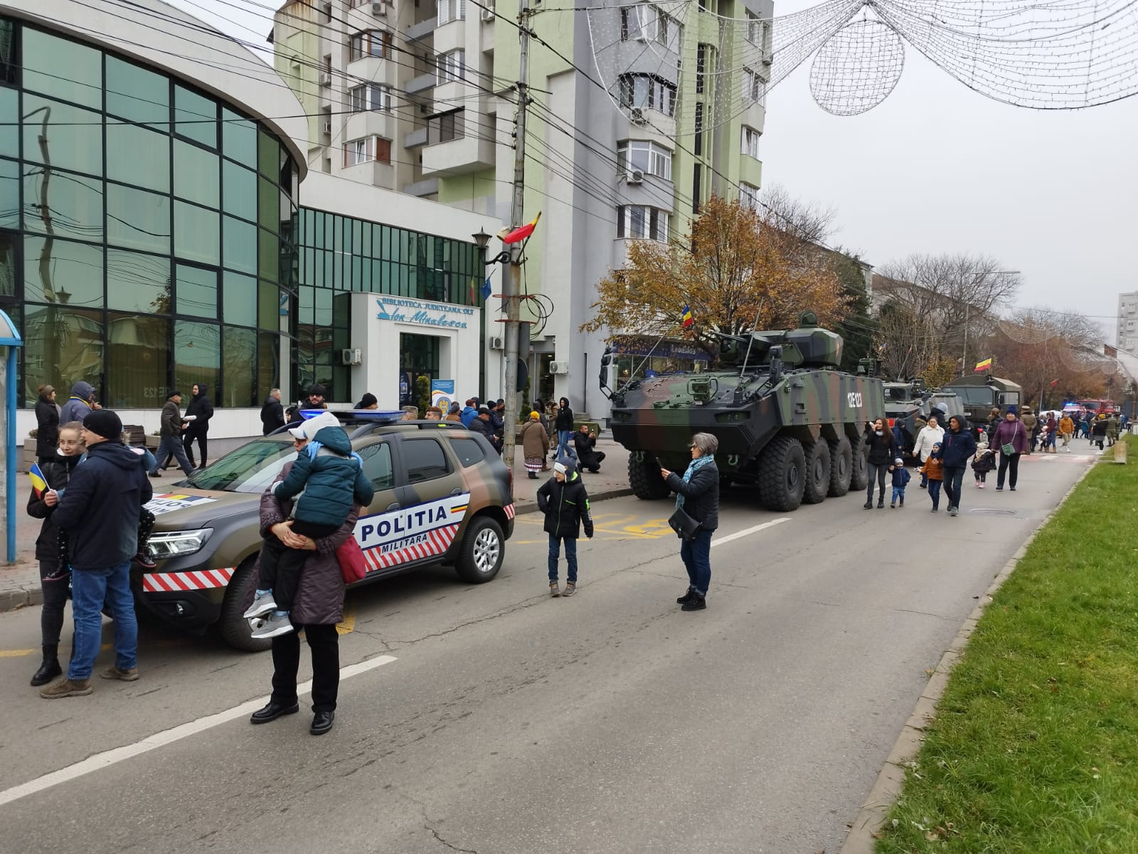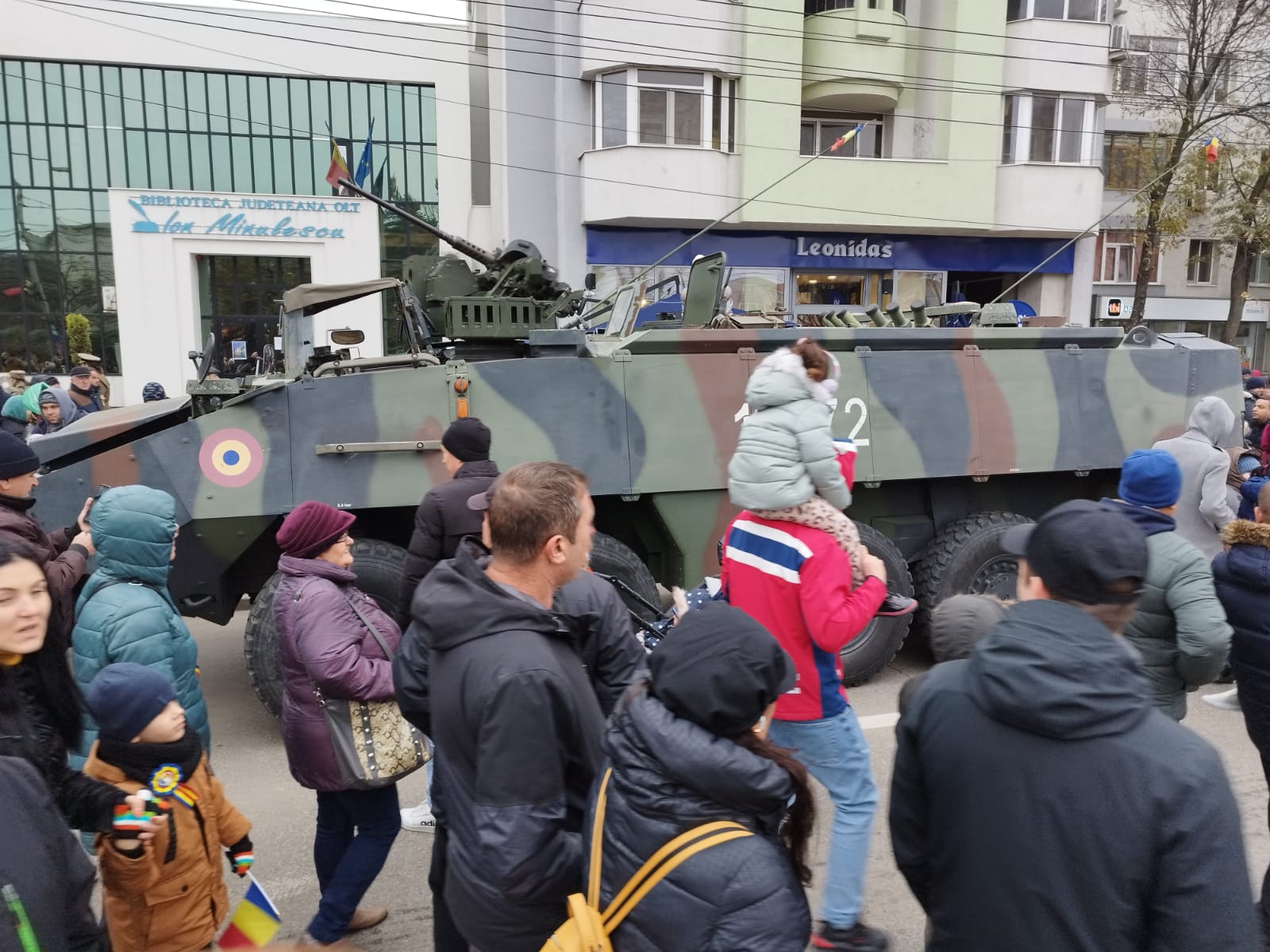 Manifestările dedicate împlinirii a 104 ani de la Marea Unire de la Alba Iulia s-au încheiat la Slatina cu defilarea trupelor Ministerului Apărării Naţionale şi Ministerului Afacerilor Interne, pe cântecele patriotice ale Fanfarei de estradă „Lyra Band” a Slatinei, pentru ca apoi tehnica acestora, inclusiv două tancuri, aflată pe principalul bulevard al urbei, să fie luată cu asalt de copii, însoțiți de părinți și bunici, care nu au ezitat să își facă fotografii pentru a rămâne cu o amintire frumoasă.