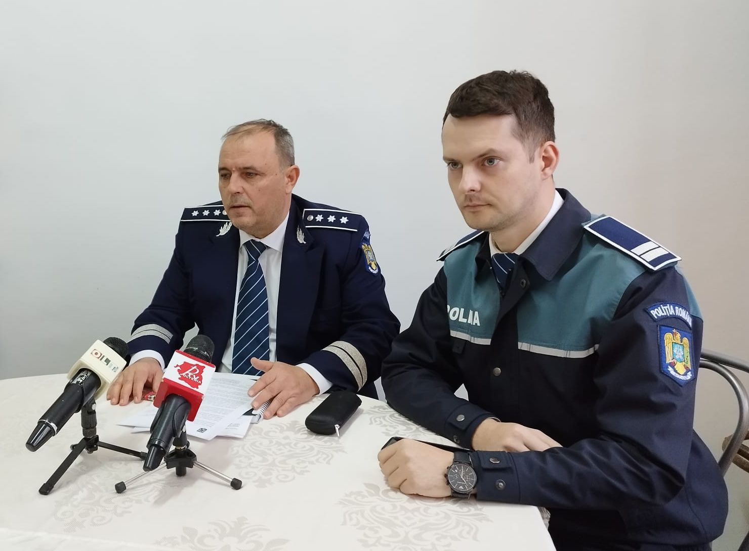 Comisar șef de poliție Emilian Avram, șeful Biroului Arme, Explozivi și Substanțe Periculoase Olt, și agent principal Claudiu Șerban, purtător de cuvânt al IPJ