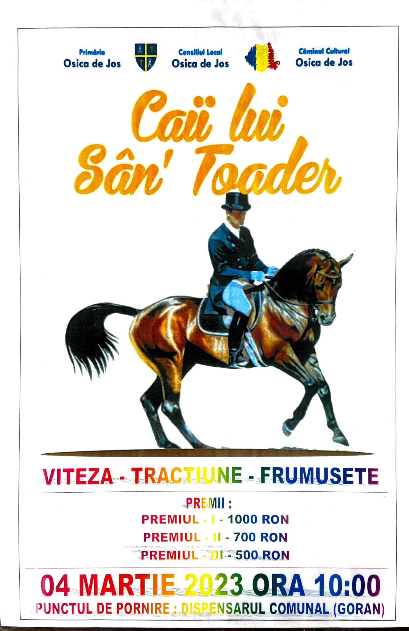 Economistul Marian Pistol, primarul comunei Osica de Jos, continuă să rămână unul dintre edilii județului Olt care păstrează tradițiile și obiceiurile locale, motiv pentru care la începutul primului său mandat, adică în anul 2017, a reînviat o tradiție dată uitării de fostele administrații locale ale localității de pe malul râului Olteț. Vorbim de concursul „Caii lui Sân’ Toader”, care anul acesta a ajuns la ediția a IX-a și este organizat de Primăria, Consiliul Local și Căminul Cultural Osica de Jos.