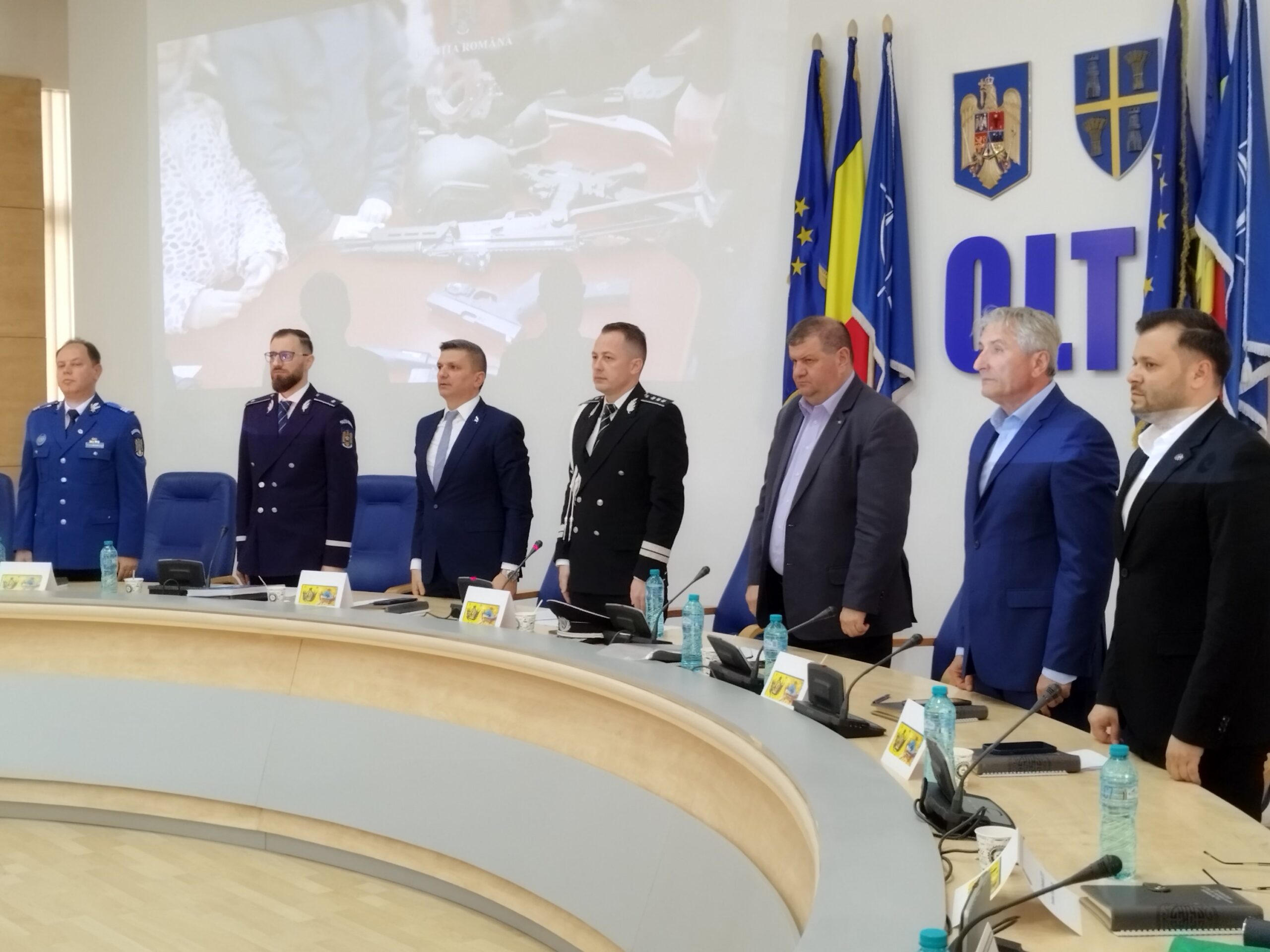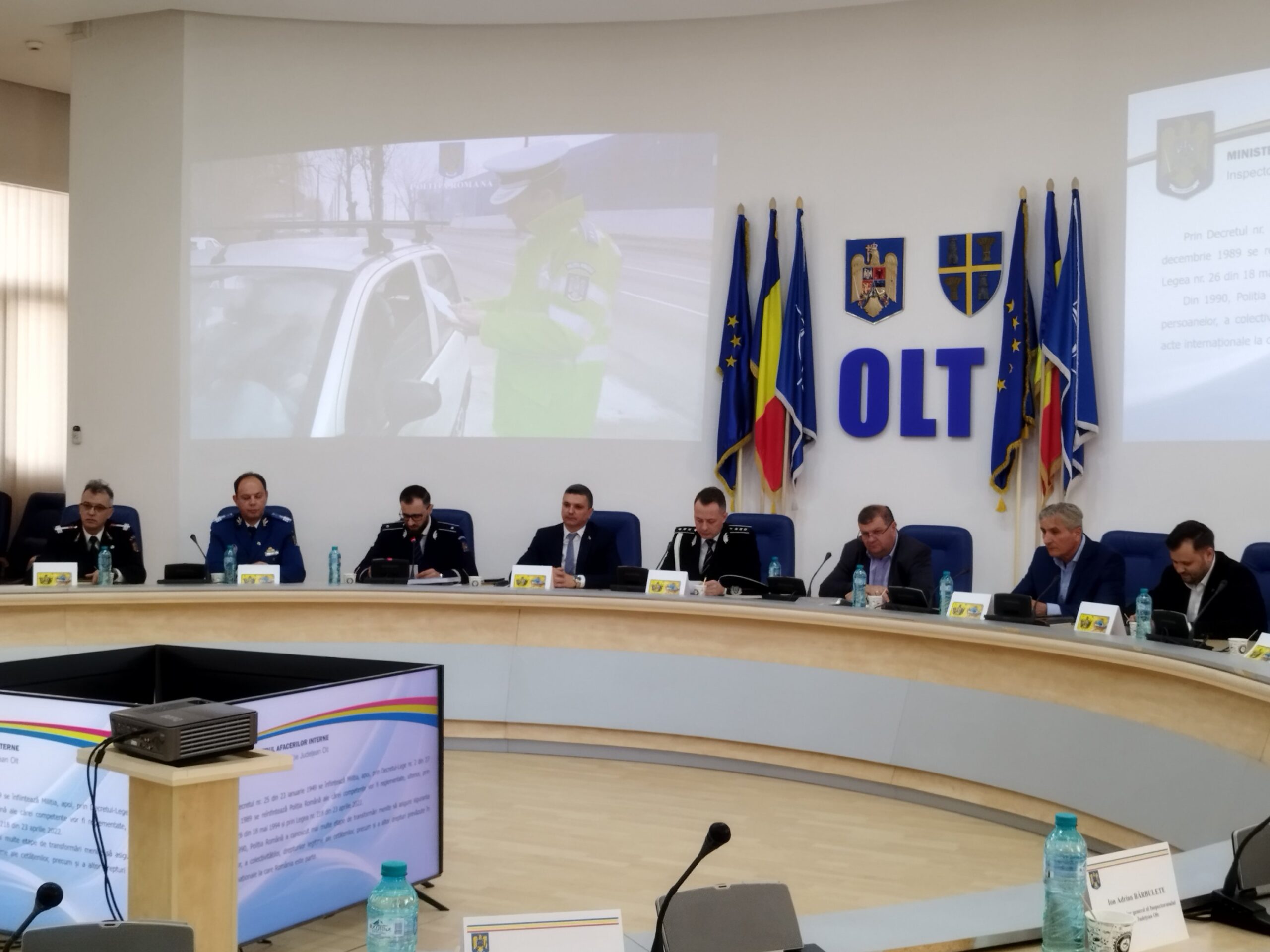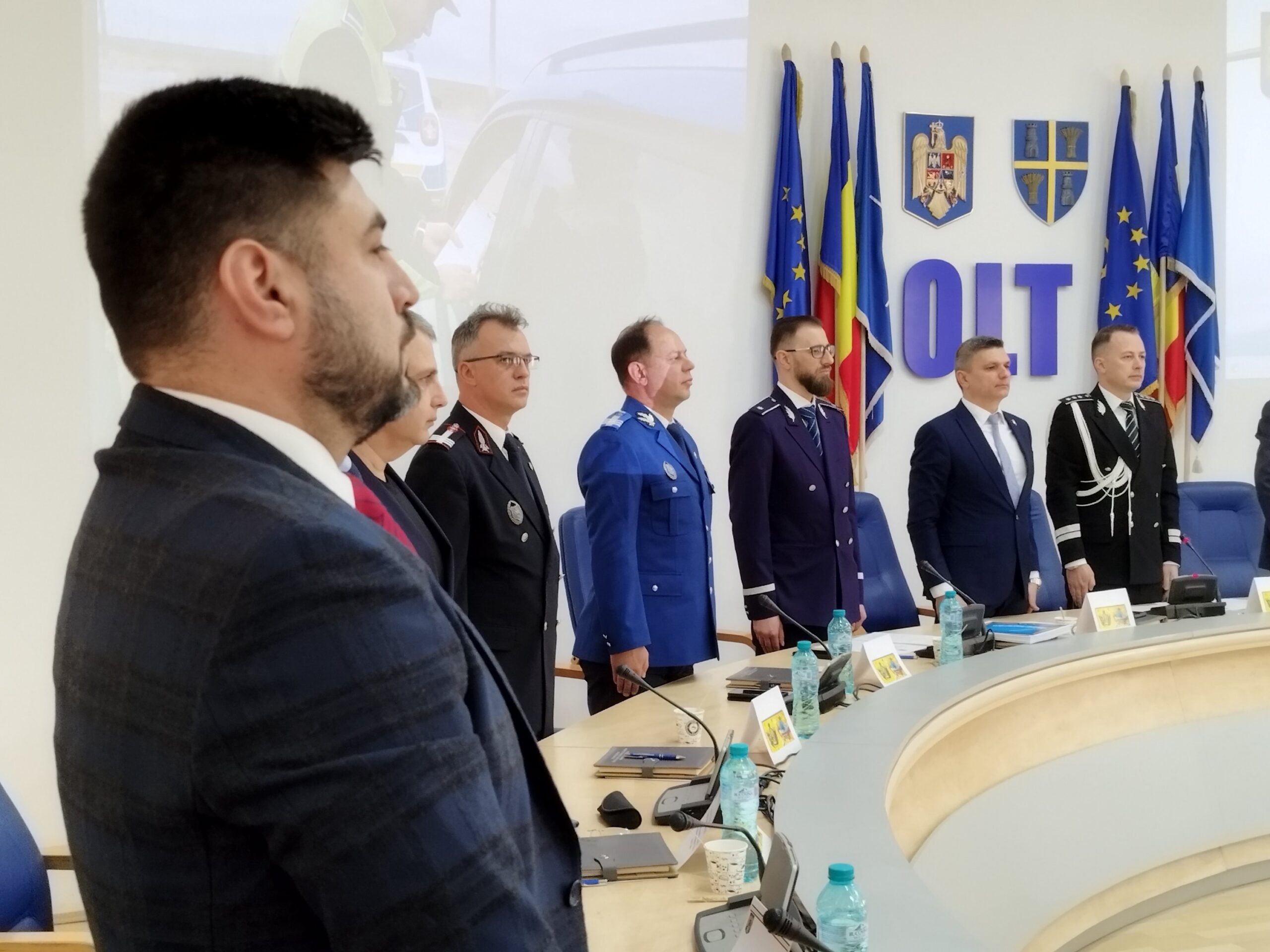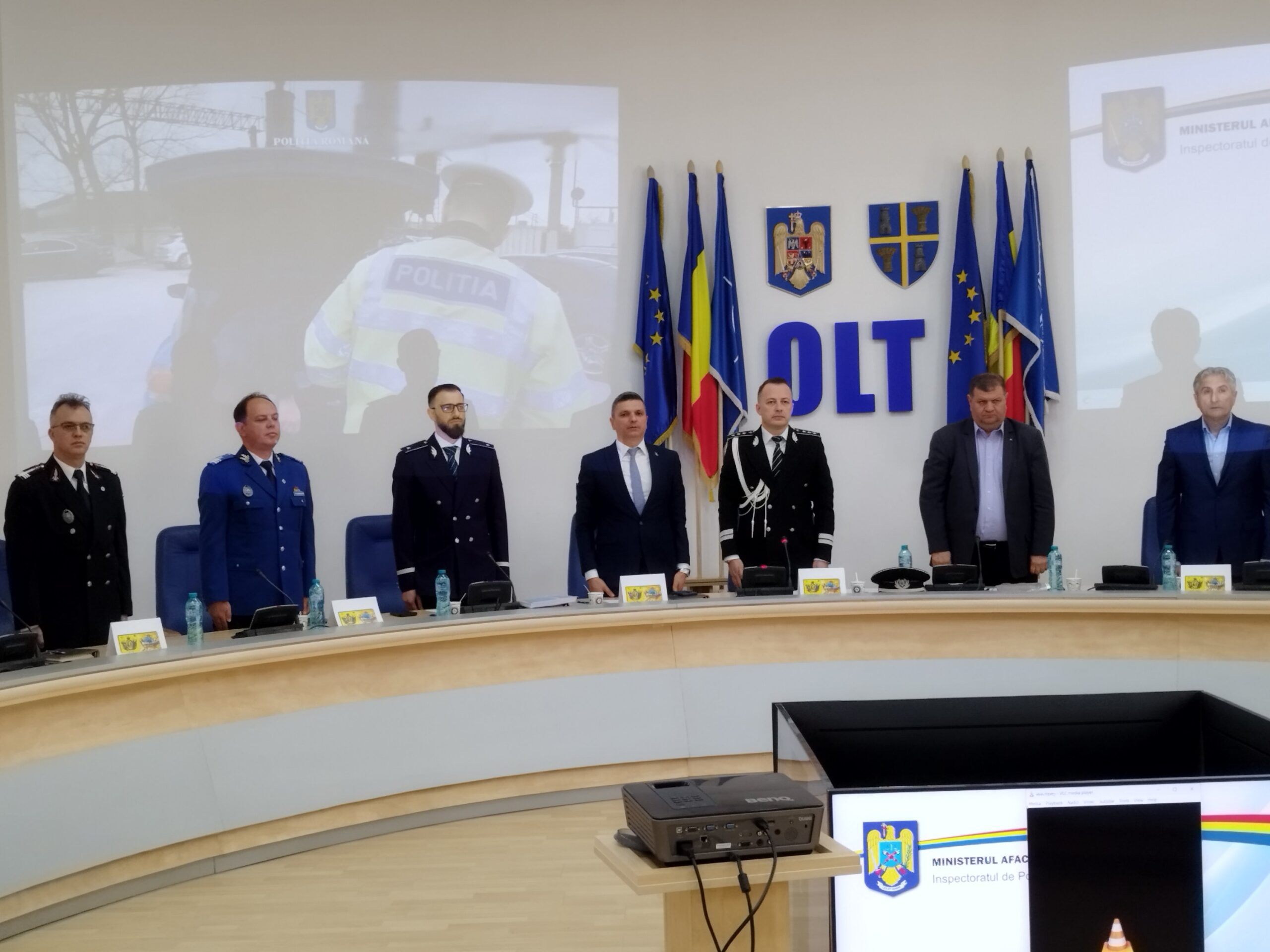 Alături de comisarul șef Ionuț Ilinca, inspector șef al Poliției Olt, au fost prezenți, printre alții, prefectul de Olt Florin Homorean, Virgil Delureanu, vicepreședintele CJ Olt, Alexandru Berechet, viceprimar al municipiului Slatina, dar și șefi sau reprezentanți ai instituțiilor din județ cu care Poliția colaborează. Evenimentul din sala de ședințe a CJ a debutat cu intonarea imnului național și cu un moment de reculegere în memoria polițiștilor olteni căzuți la datorie, apoi subcomisarul Ștefan Mutu, șeful de Cabinet al IPJ Olt, a prezentat o scurtă istorie a Poliției la nivelul județelor Romanați și Olt. Ulterior, inspectorul șef al Poliției, Ilinca, a dat citire mesajului transmis de chestorul de poliție Benone Marian Matei, inspectorul general al Poliției Române. De asemenea, comandantul polițiștilor olteni a transmis și mesajul său cu prilejul acestei zile, în cadrul căruia a ținut să mulțumească colegilor săi pentru rezultatele înregistrate în ultimul an, majoritatea fiind pozitive pe aproape toate liniile de muncă.