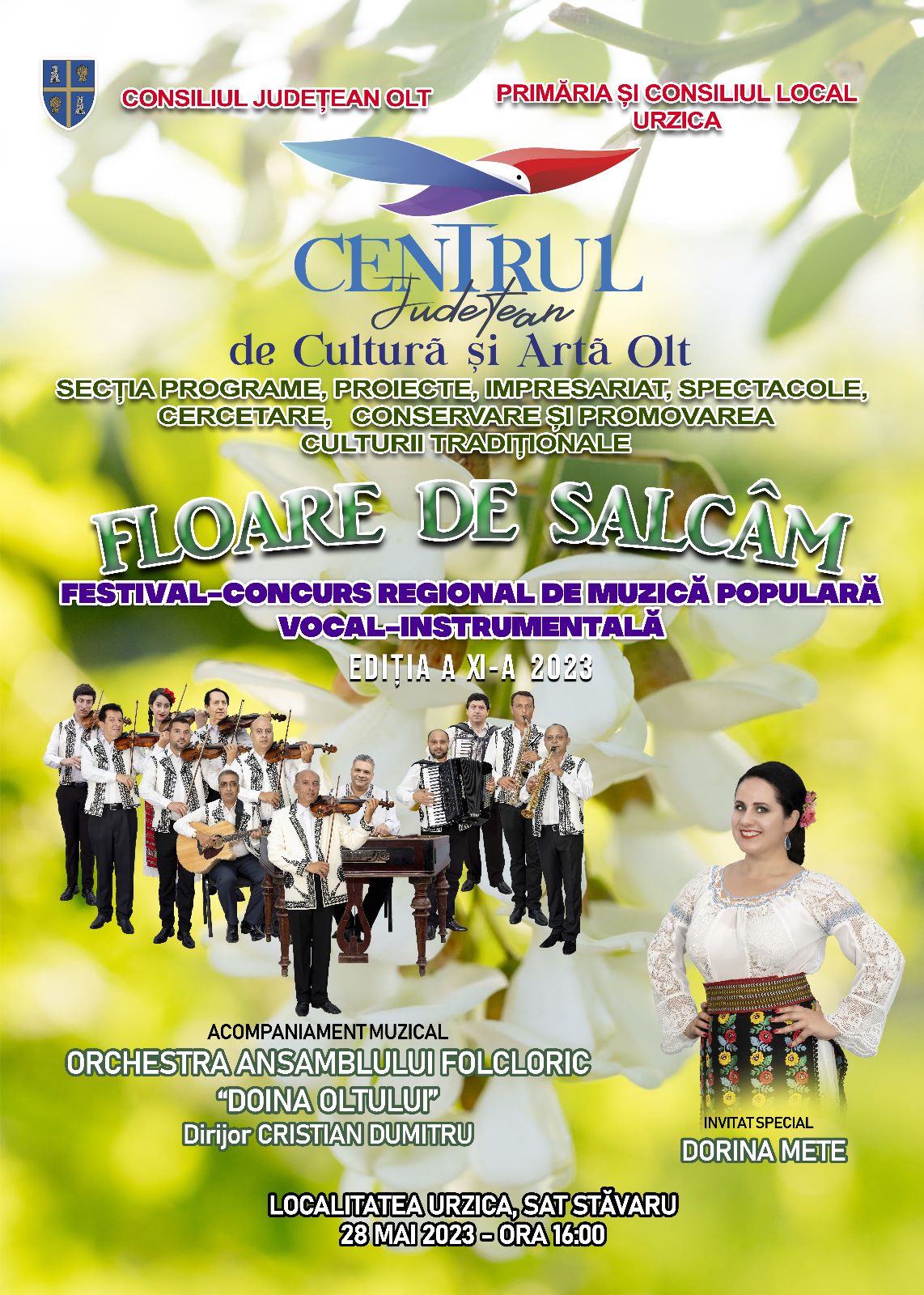 Locuitorii comunei Urzica se pregătesc de sărbătoare, având în vedere că la sfârșitul lunii viitoare, mai precis pe 28 mai va avea loc Festivalul concurs regional de muzică populară vocal instrumentală „Floare de salcâm”, ajuns anul acesta la ediția cu numărul 11. Organizatori sunt ca și până acum Primăria și Consiliul Local Urzica, Consiliul Județean Olt și Centrul Județean de Cultură și Artă Olt, prin Secția Programe, Proiecte, Impresariat, Spectacole, Cercetare, Conservare și Promovarea Culturii Tradiționale.