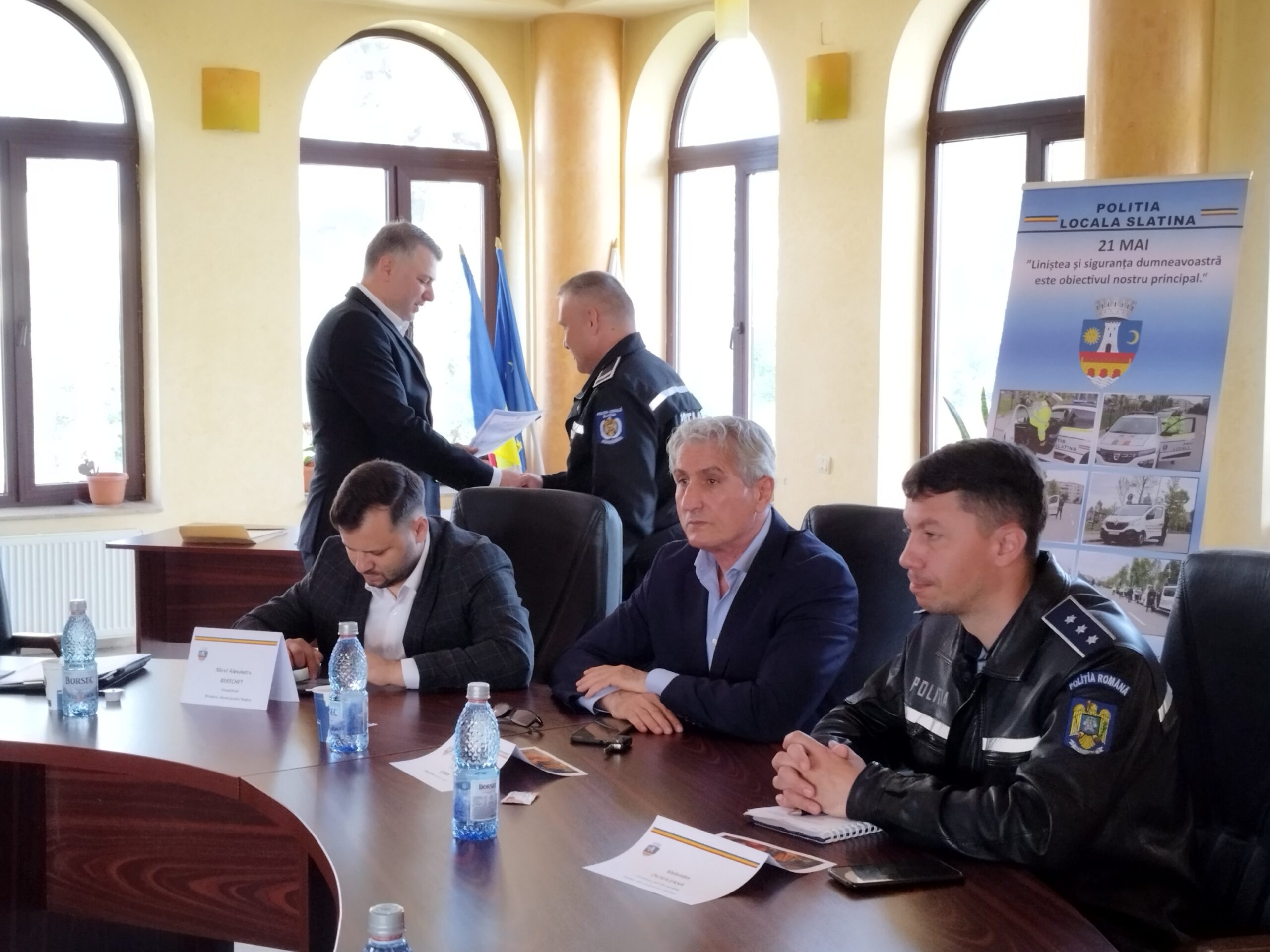 La Casa Căsătoriilor de pe Dealul Grădiște din Slatina a avut loc activitatea festivă al cărei amfitrion a fost directorul Bogdan Apostoliceanu și la care au participat Ionuț Ivan, vicepreședintele Consiliului Județean Olt, Alexandru Berechet, viceprimar al municipiului Slatina, Ionuț Ilinca, inspectorul șef al Inspectoratului de Poliție Județean Olt, Iulian Mihai, adjunct al Jandarmeriei Olt, Valentin Duiuleasa, șeful Biroului Rutier al Poliției Slatina, alți șefi de instituții, precum și actuali polițiști locali, dar și viitori pensionari ai Poliției Locale Slatina.