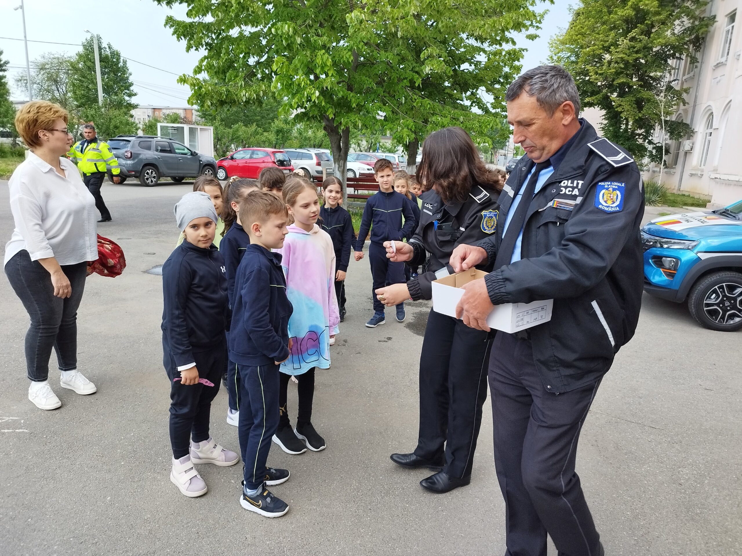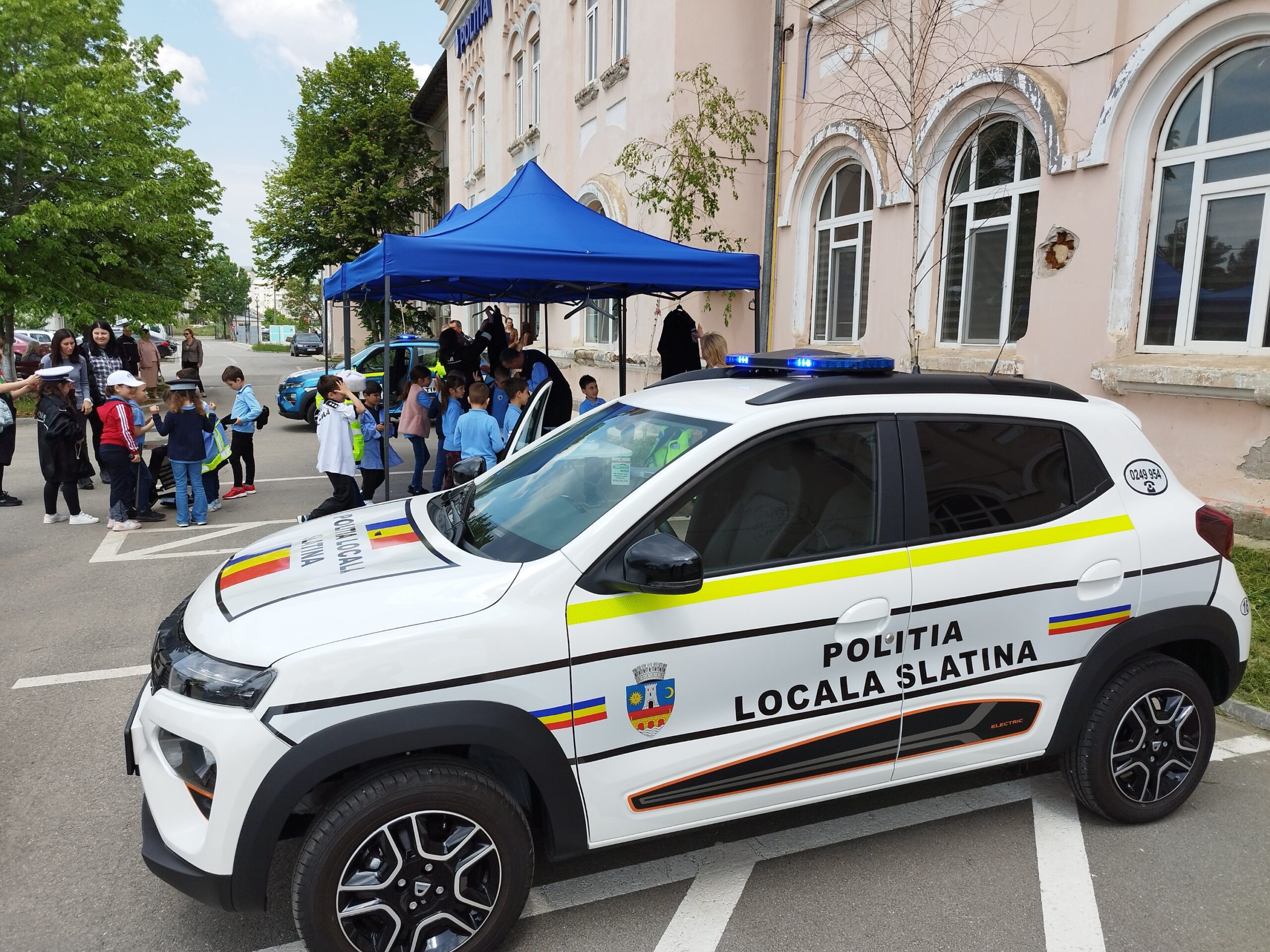 Apoi, sediul Poliției Locale Slatina a avut porțile deschise pentru peste 50 de elevi ai Școlii Gimnaziale nr. 3 Slatina, care au primit insignă de „Micul polițist”, însă nu au ezitat să se joace cu echipamentele din dotarea polițiștilor locali și să pornească sirenele echipajelor rutiere ale Poliției Locale. Un punct de atracție pentru cei mici a fost însă Dispeceratul instituției, spațiu de unde se văd imaginile preluate de cele peste 200 de camere video de supraveghere montate la Slatina.