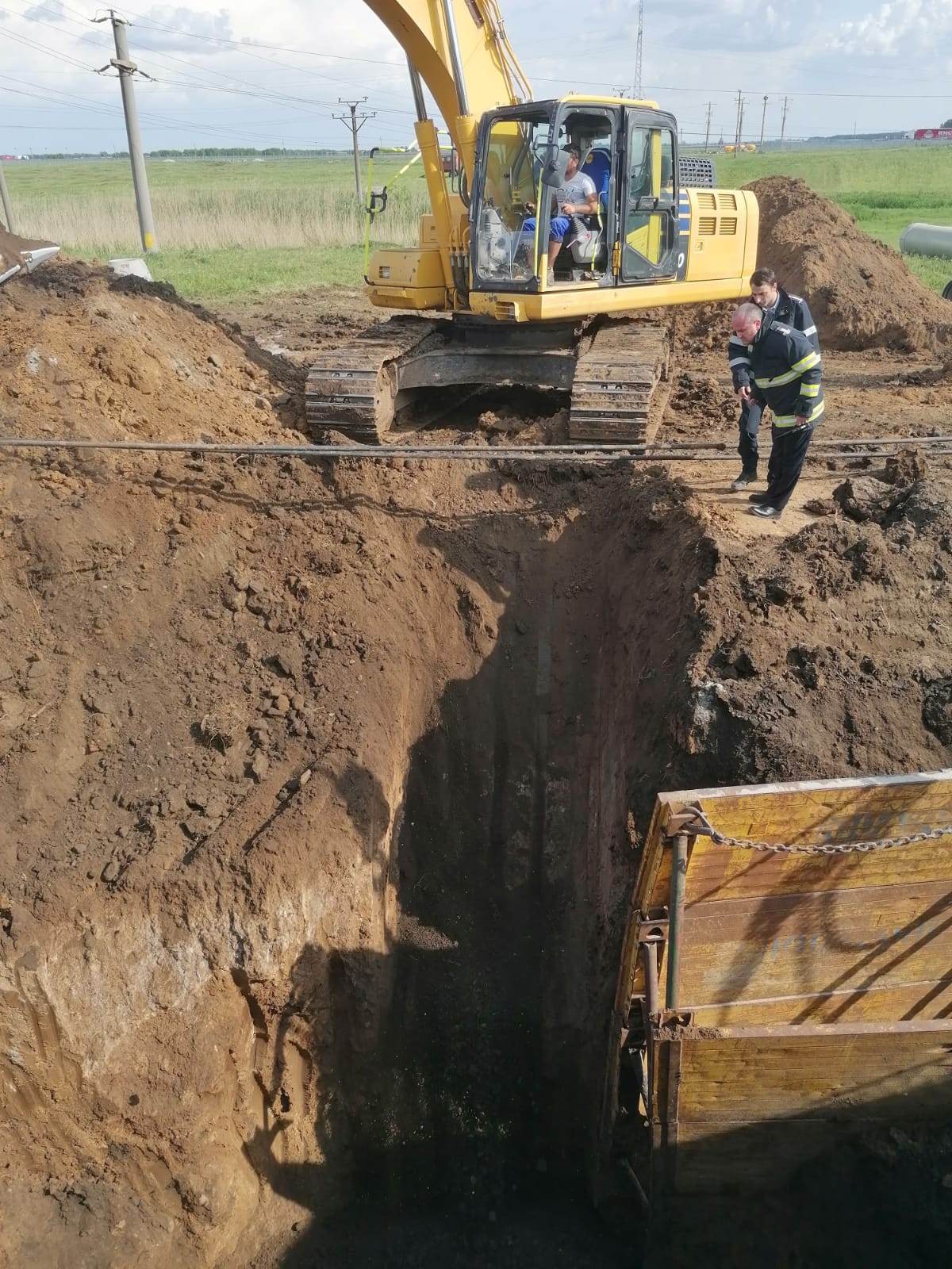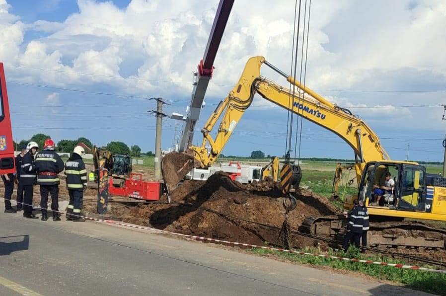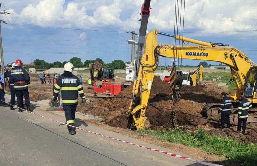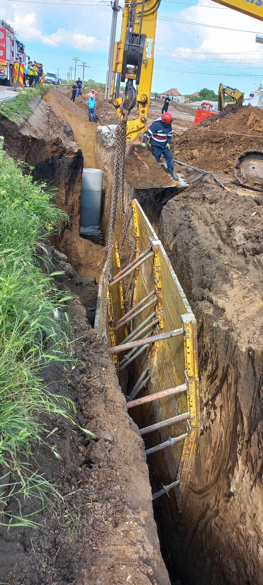 UPDATE 2: În jurul orei 22:00 a nopții de joi, la aproape șase ore după ce malul de pământ s-a surpat peste bărbat, pompierii au reușit să ajungă la el, acesta aflându-se la o adâncime de aproape șapte metri.