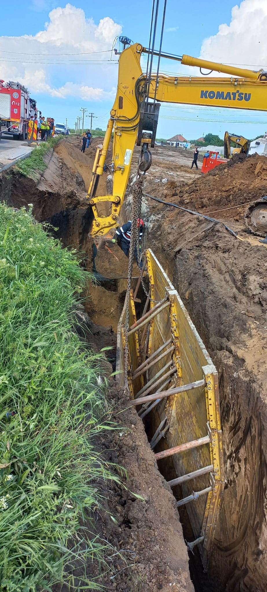 Pompierii fac eforturi acum pentru a scoate și cealaltă persoană de sub pământ.