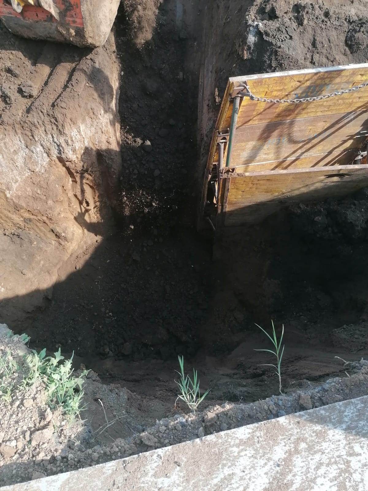 Grav accident de muncă la ieșirea din Caracal spre Stoenești. Două persoane au fost prinse sub un mal de pământ