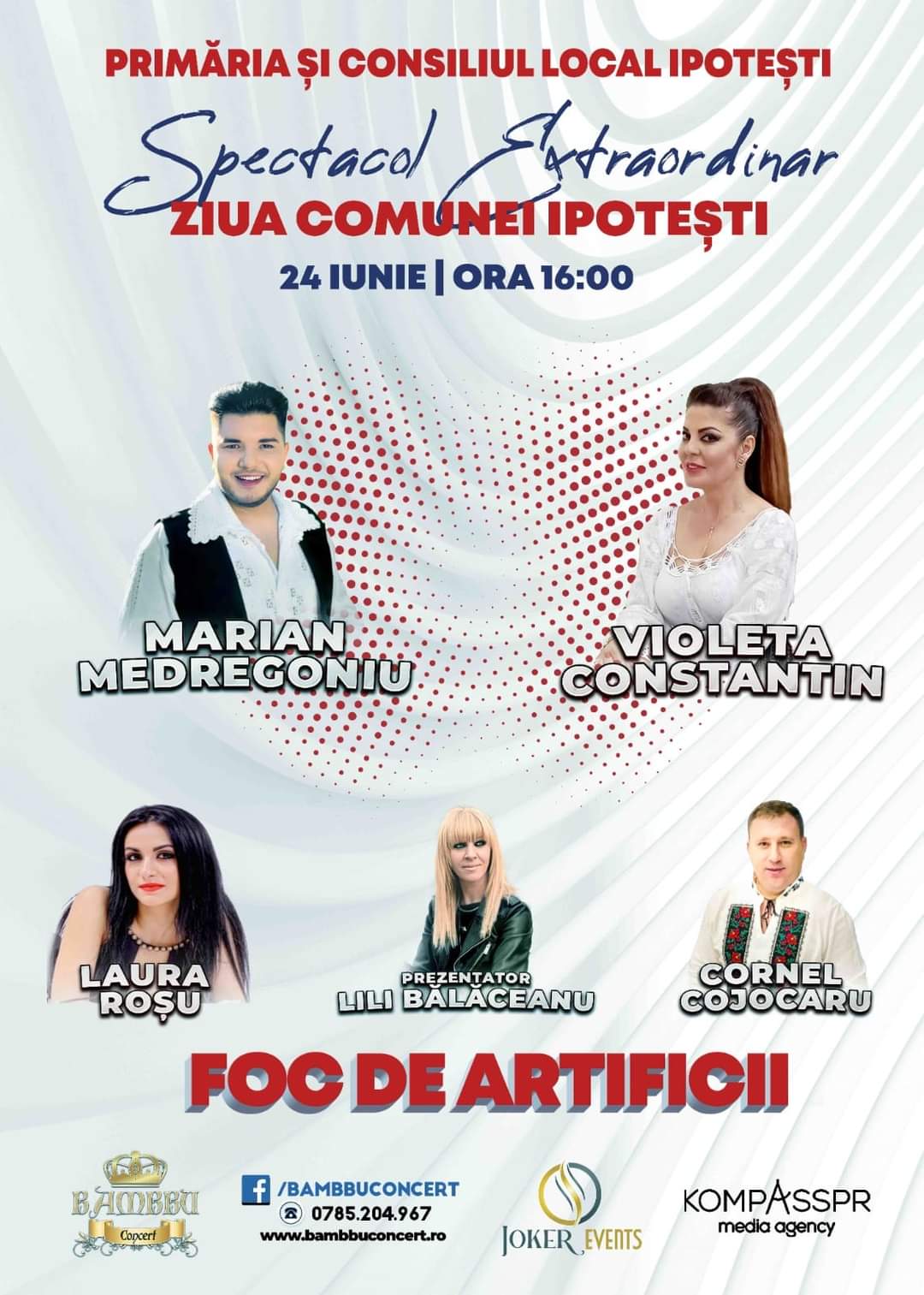 Credincioşii ortodocşi se pregătesc să marcheze o zi mare de sărbătoare în acest sfârșit de săptămână. Sâmbătă, 24 iunie, este ziua naşterii Sfântului Ioan Botezatorul, cunoscută în popor şi ca Drăgaica sau Sânzienele, motiv de distracție și pentru locuitorii comunei oltene Ipotești, pentru care Primăria și Consiliul Local au pregătit multe surprize. Însă, administrația publică locală, în frunte cu primarul Constantin Necșuț, au pregătit un spectacol extraordinar, cap de afiș fiind Marian Medregoniu (FOTO) și Violeta Constantin.
