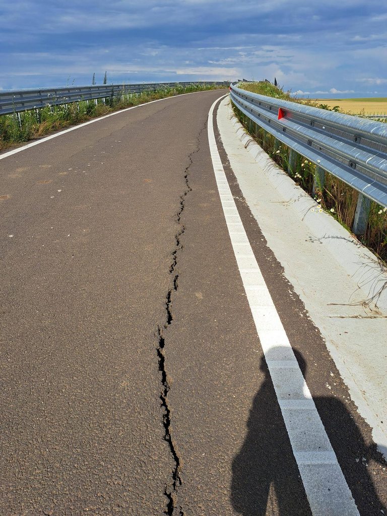Pasionații de infrastructură au făcut recent publice câteva imagini cu câteva fisuri care au apărut la un pasaj agricol care supratraversează Drumul Expres (DEx) 12 Craiova – Slatina – Pitești, Lotul 2 al Tronsonului 2, respectiv la kilometrul 21 de pe Centura ocolitoare a municipiului Slatina.