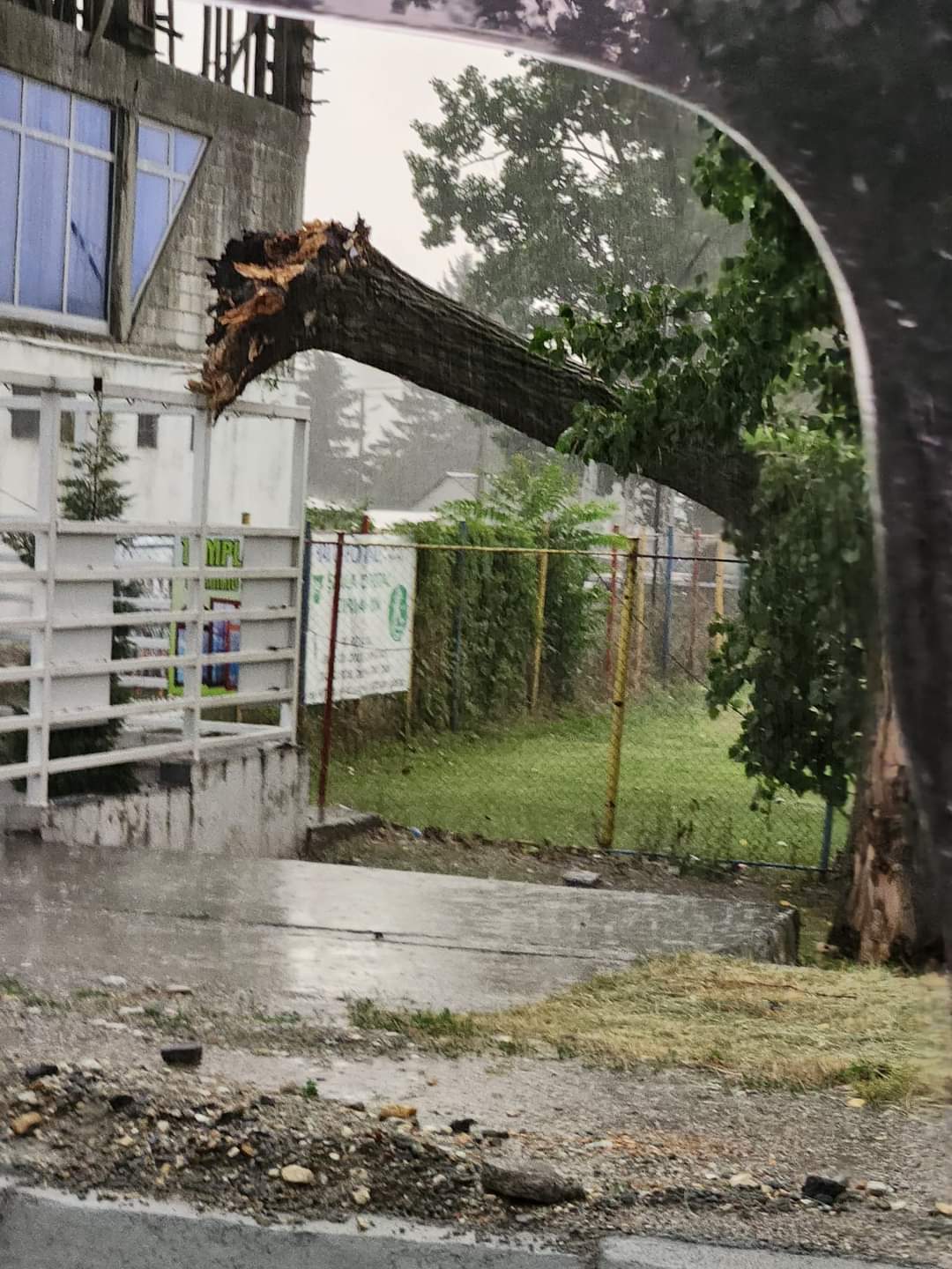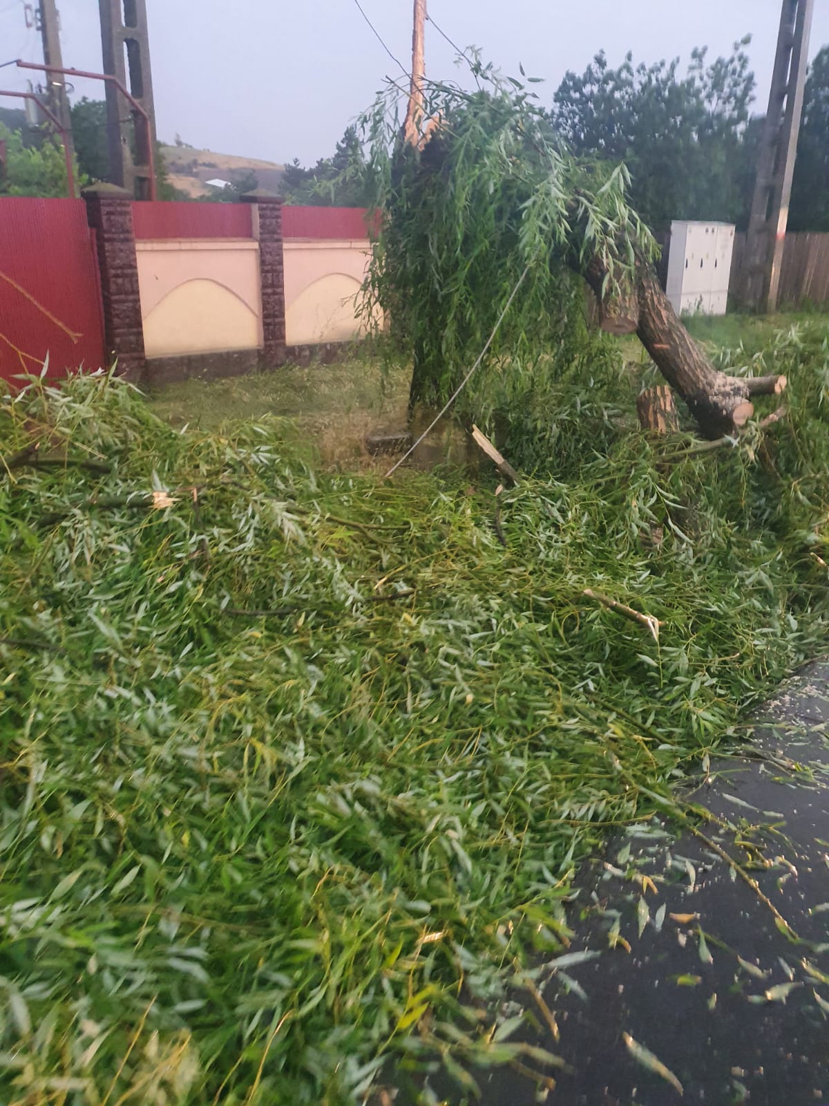 Pompierii au intervenit pentru a preveni pericolul de pe partea carosabilă, copacul căzut fiind îndepărtat.