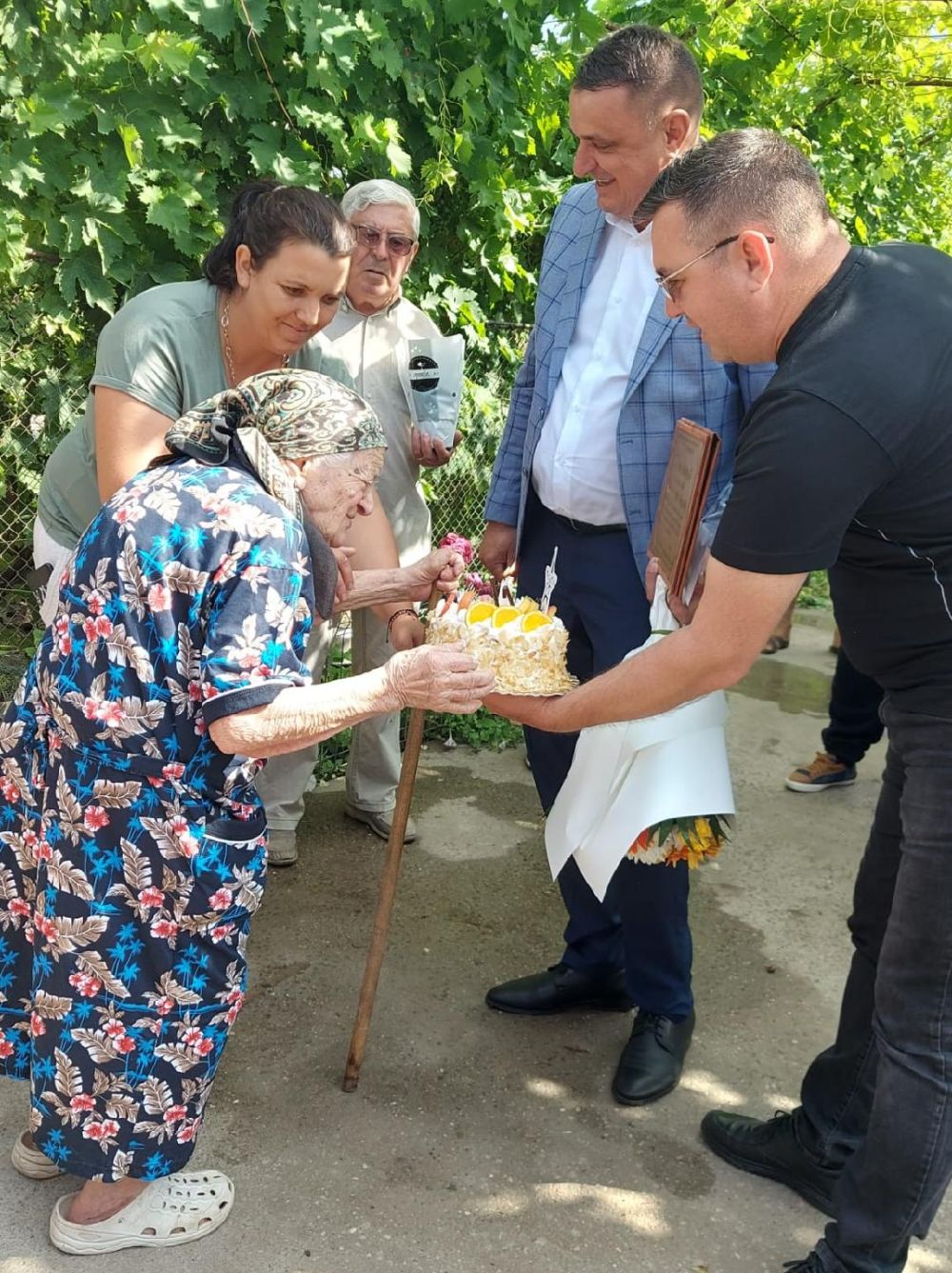 Bătrânica a avut parte și de daruri din partea edilului, acesta oferindu-i drept cadou un tort, un buchet imens de flori, o plachetă personalizată, dar și un premiu în bani.