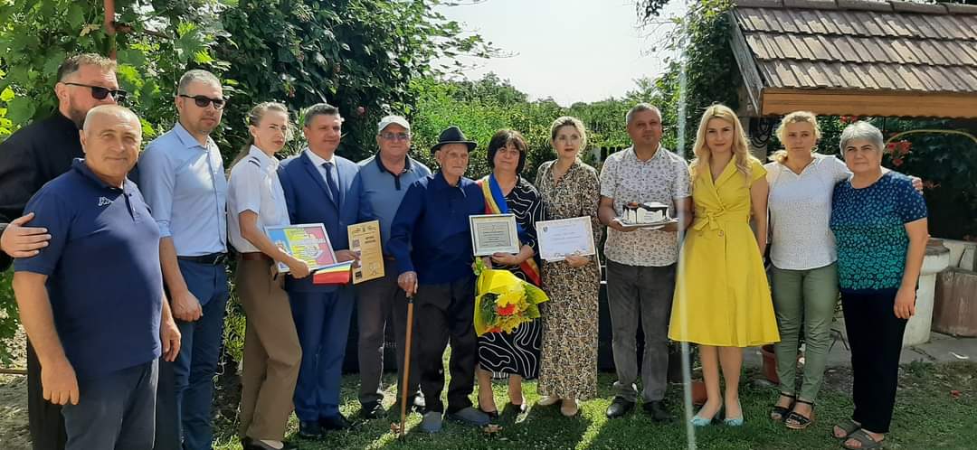 Pe lângă felicitări, nea Florea a primit un premiu în bani, un buchet de flori, un tort și o diplomă aniversară.