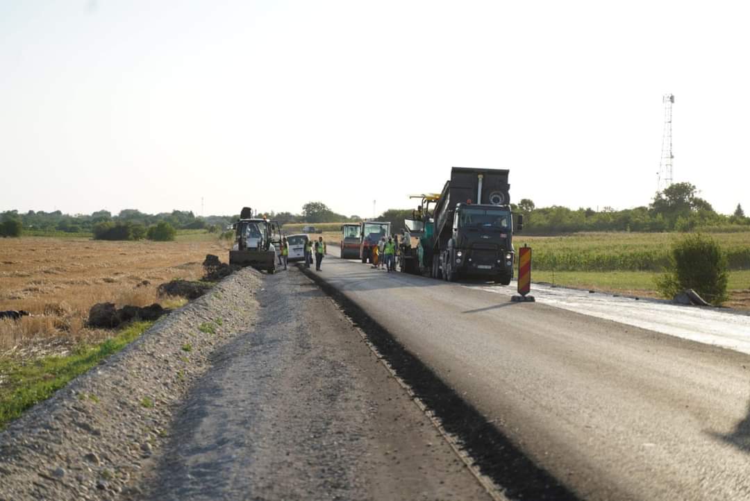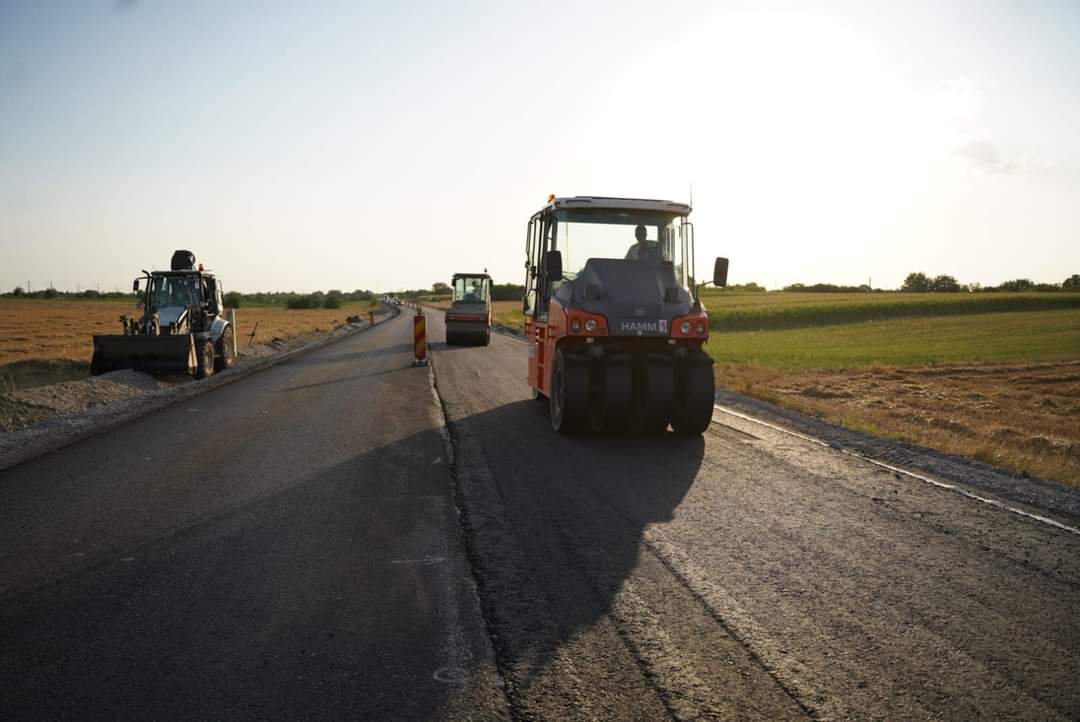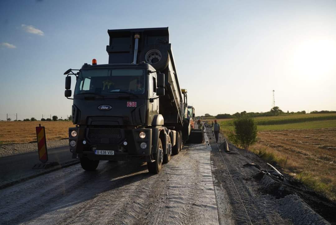 În acest moment, se așterne asfalt în zona localității oltene Mihăești și se lucrează la poduri și podețe.