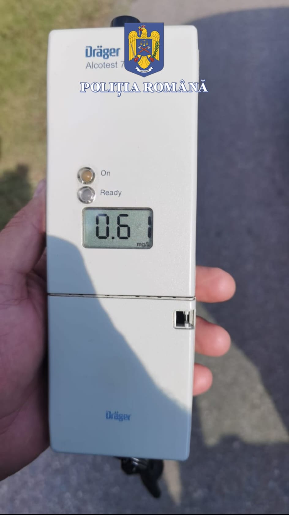 Pentru că și acesta mirosea a alcool, polițiștii l-au testat cu aparatul alcooltest, rezultând o concentrație alcoolică de 0,61 mg/l alcool pur în aerul expirat.