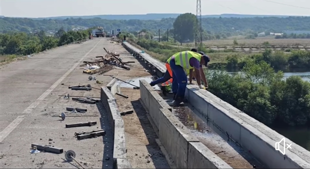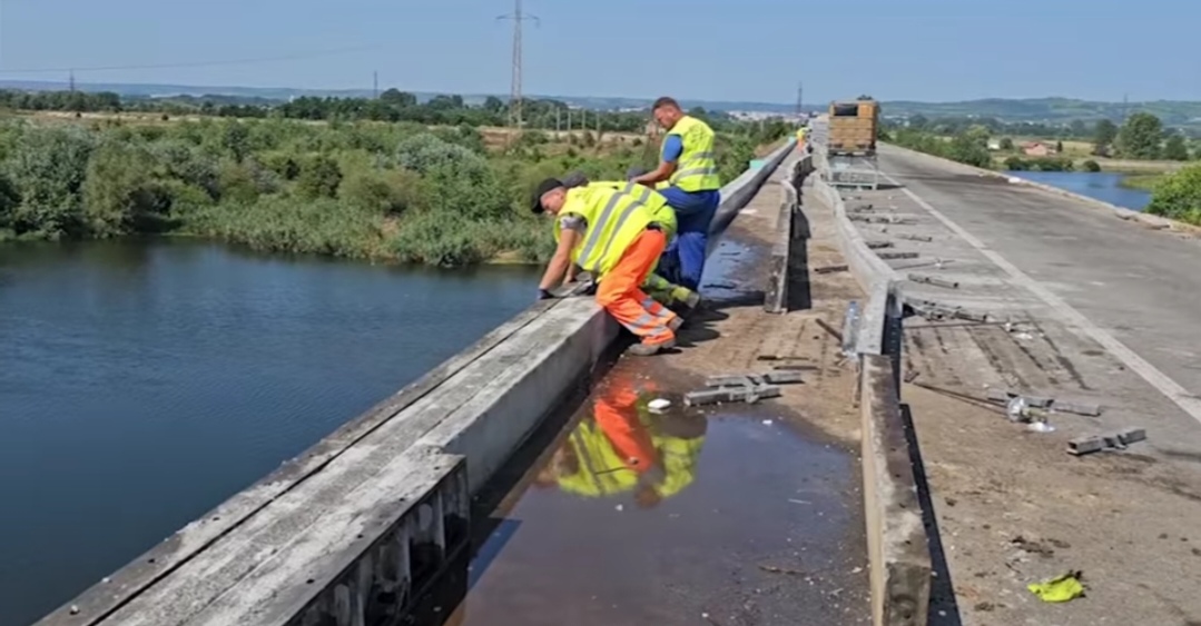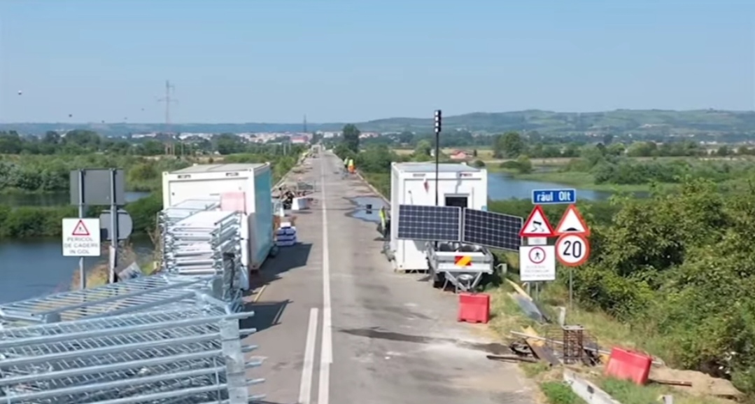„Până în prezent, Antreprenorul a efectuat lucrări de demolare trotuare și demontare parapet pietonal. La acest moment se lucrează la refacerea grinzii perimetrale, care va avea o lungime totală pe ambele sensuri de 800 metri liniari (ml) – 320 sunt deja realizați. Se mai lucrează la debitarea asfaltului de pe margini pentru a se putea reface grinda perimetrală, iar în paralel se montează parapetul. Săptămâna viitoare se va freza vechiul covor asfaltic și se va așterne un strat nou de uzură, ulterior vor începe și lucrările de montare a dispozitivelor de acoperire a rosturilor de dilatare și montare a parapetelui de beton pe pod și pe rampe”, se arată în postarea drumarilor de la DRDP Craiova.