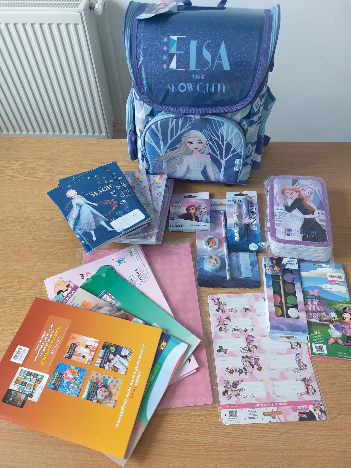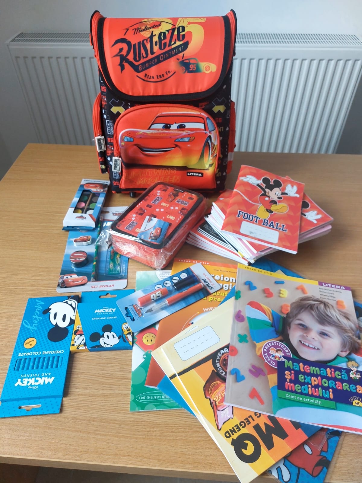 Potrivit sursei citate, fiecare ghiozdan conține: pachet cărți școlare compus din: Matematică și explorarea mediului, Arte vizuale și abilități practice, Creionul magic; caiet tip I – 7 bucăți; set creioane colorate – 1 bucată; caiet matematica A5 – 7 bucăți; set acuarele 12 culori și pensulă – 1 bucată; penar 3 fermoare echipat cu 39 de piese – 1 bucată; set de scris 4 piese – 1 bucată; stilou + rezerve – 1 bucată; caiet dictando A5 – 7 bucăți; mapă cu buton A4 – 1 bucată; creioane cerate 12 culori – 1 bucată; set etichete autoadezive – 30 bucăți; bloc desen A4 – 2 bucăți.