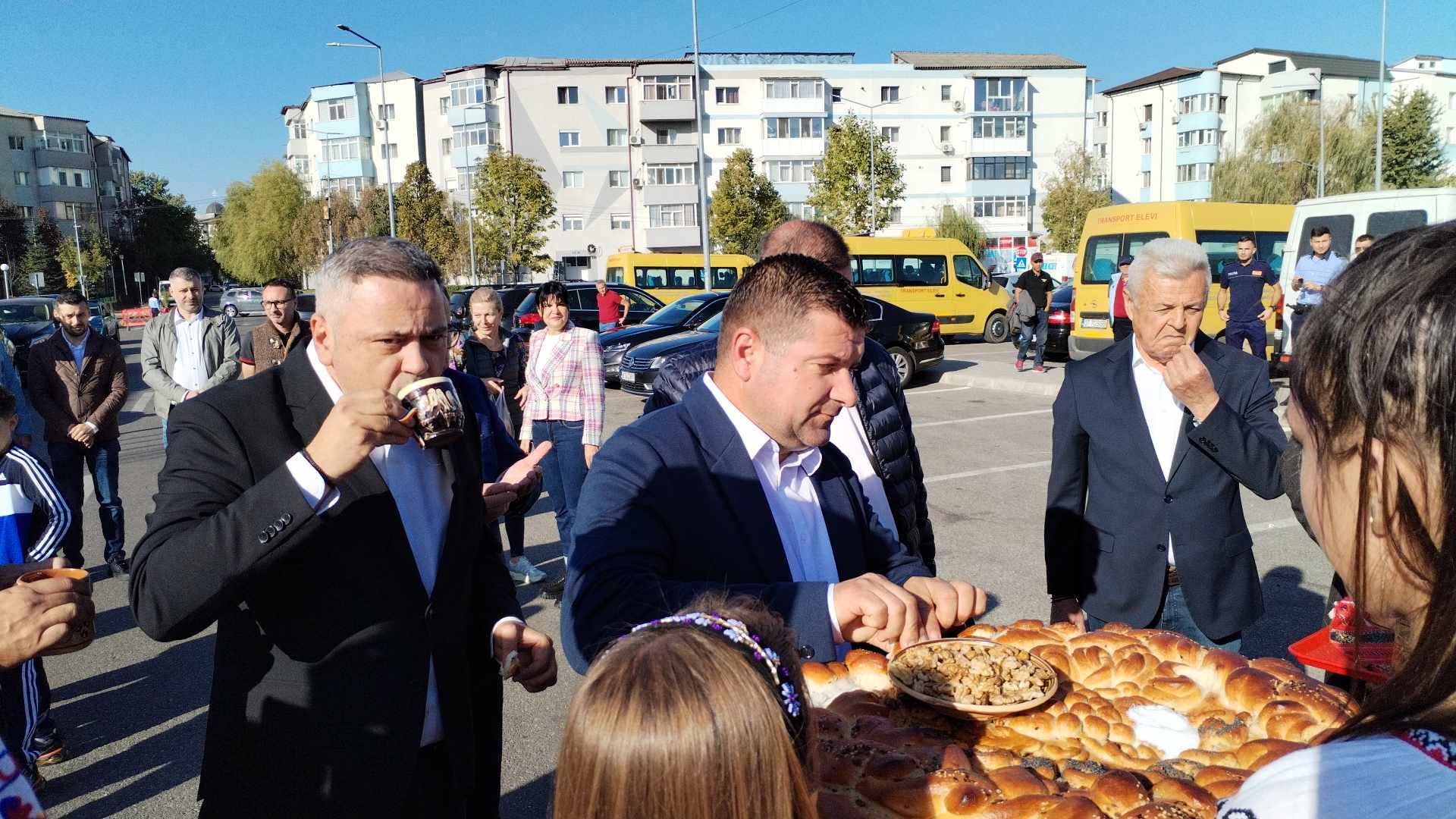 Cu toții au fost întâmpinați de copii frumos îmbrăcați în costume populare autentice cu tradiționala pâine și sare, dar și de ansambluri folclorice locale care au jucat mai multe dansuri din zona Olteniei. Undeva la două ore a petrecut ministrul Agriculturii în târgul de la Slatina, dedicat Zilei Recoltei.