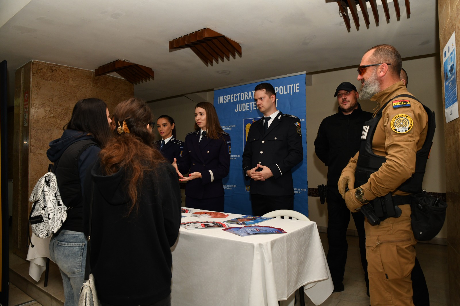„Persoanele care au participat la eveniment au aflat despre cum pot deveni polițiști, urmând cursurile unei forme de învățământ din sistemul de apărare, ordine publică și siguranță națională, dar au primit și răspunsuri la întrebările pe care le-au avut cu privire la această profesie. Acestora li s-a explicat faptul că polițistul luptă împotriva criminalității și infracțiunilor, menține ordinea publică și securitatea personală a cetățenilor, oferindu-le și exemple din experiența polițiștilor”, au transmis reprezentanții IPJ.