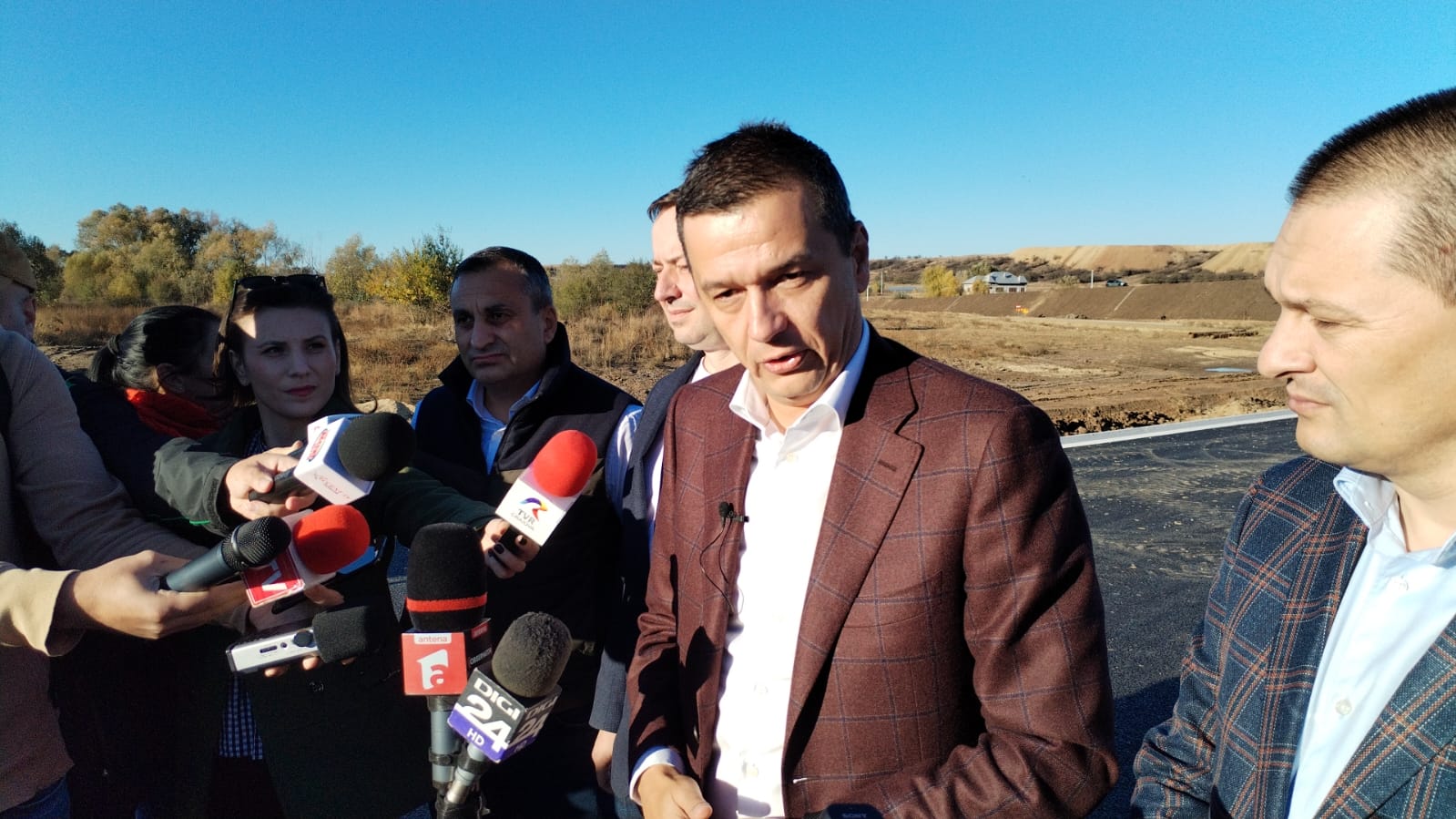 Sorin Grindeamu, ministrul Transporturilor și Infrastructurii, alături de reprezentanți din conducerea Companiei Naționale de Administrare a Infrastructurii Rutiere, Direcției Regionale de Drumuri și Poduri Craiova, Secției de Drumuri Naționale Slatina și președinții Consiliilor Județene Olt și Dolj, au fost prezenți joi, 9 noiembrie 2023, pe tronsoanele I, III și IV ale Drumului Expres 12 Craiova – Slatina – Pitești, la finalul vizitei făcând o ultimă oprire pe Tronsonul III, în zona comunei Priseaca, unde a susținut o scurtă declarație de presă referitor la cele constatate.