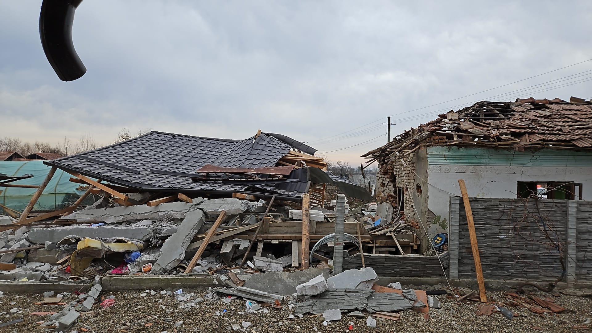 UPDATE 12:50: Echipajele prezente la locul evenimentului acționează în continuare pentru îndepărtarea elementelor de construcție.
