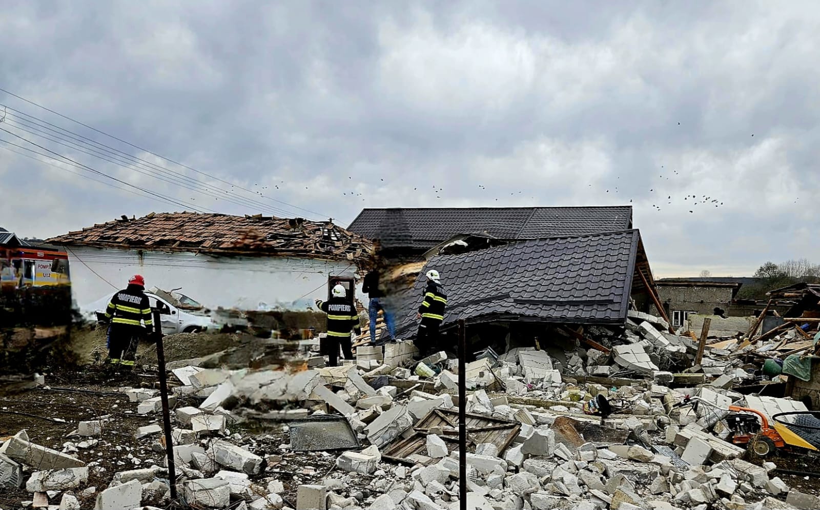 UPDATE: Reprezentantul ISU a declarat în jurul prânzului că au fost identificate două persoane surprinse sub dărâmături, o femeie, în vârstă 62 de ani, decedată, și un bărbat, de 72 de ani, conștient, surprins parțial, la nivelul picioarelor.
