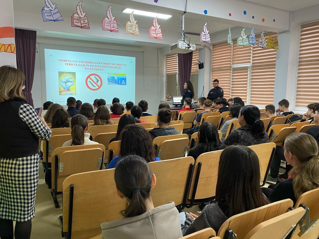 „În cadrul activităților, polițiștii le-au explicat elevilor că portul sau folosirea fără drept de obiecte periculoase în incinta unităților de învățământ reprezintă o infracțiune,