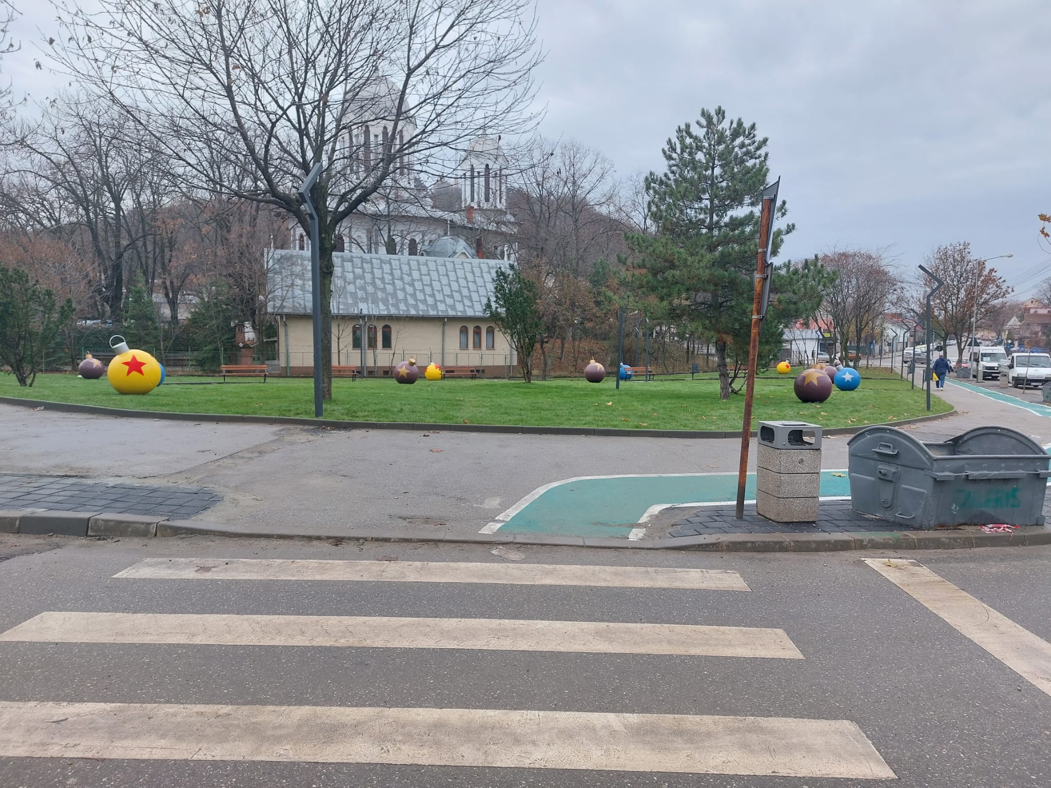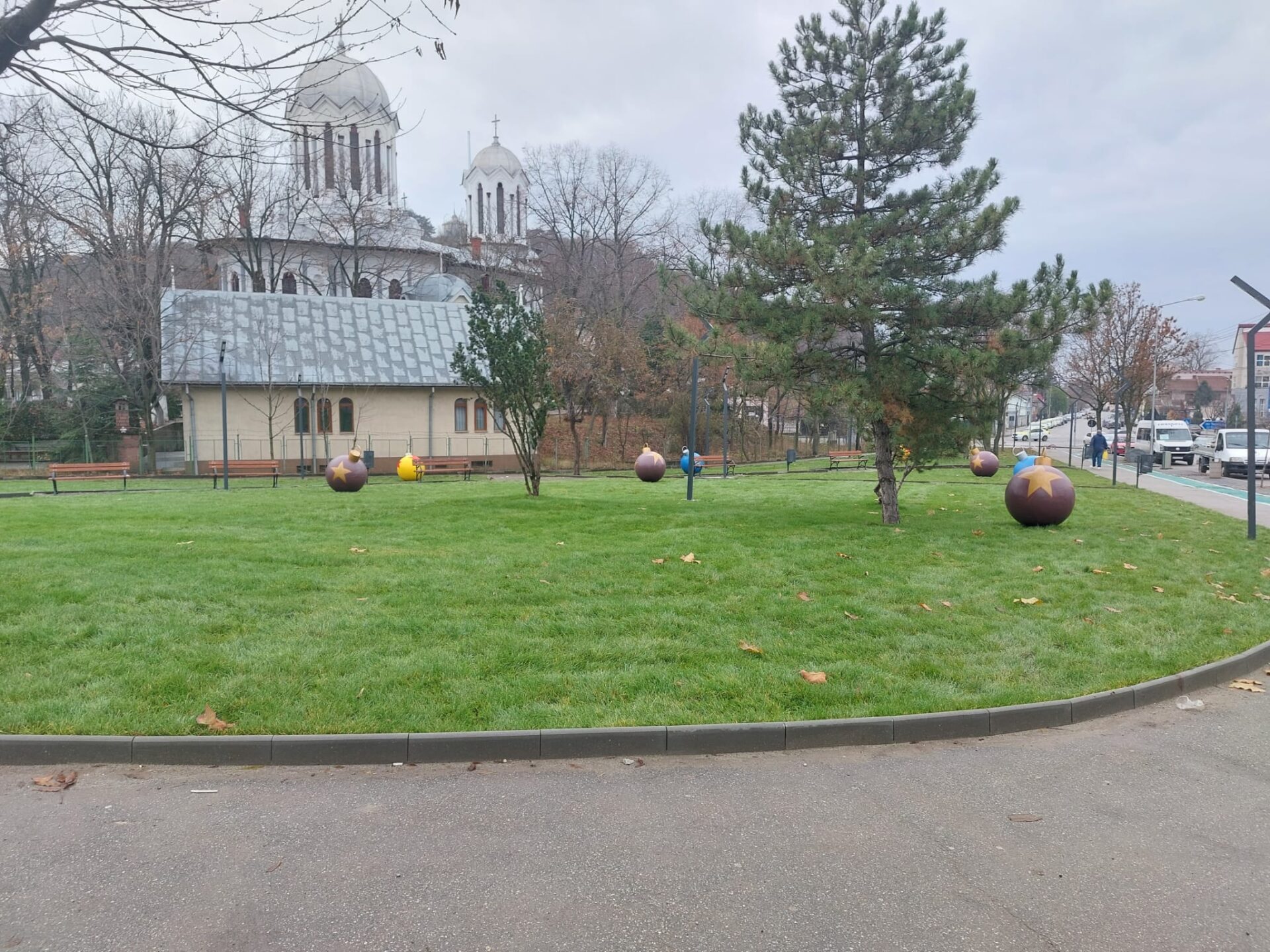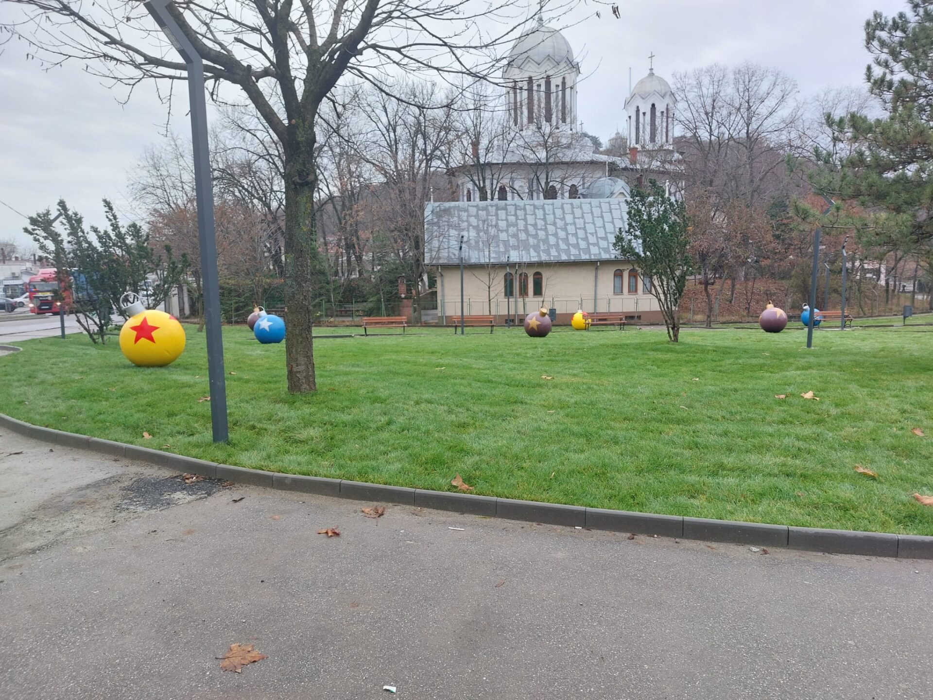 Și cum suntem în perioada Sărbătorilor de Iarnă municipalitatea a montat aici și câteva globuri multicolore mari de care se bucură cel mai mult copiii.
