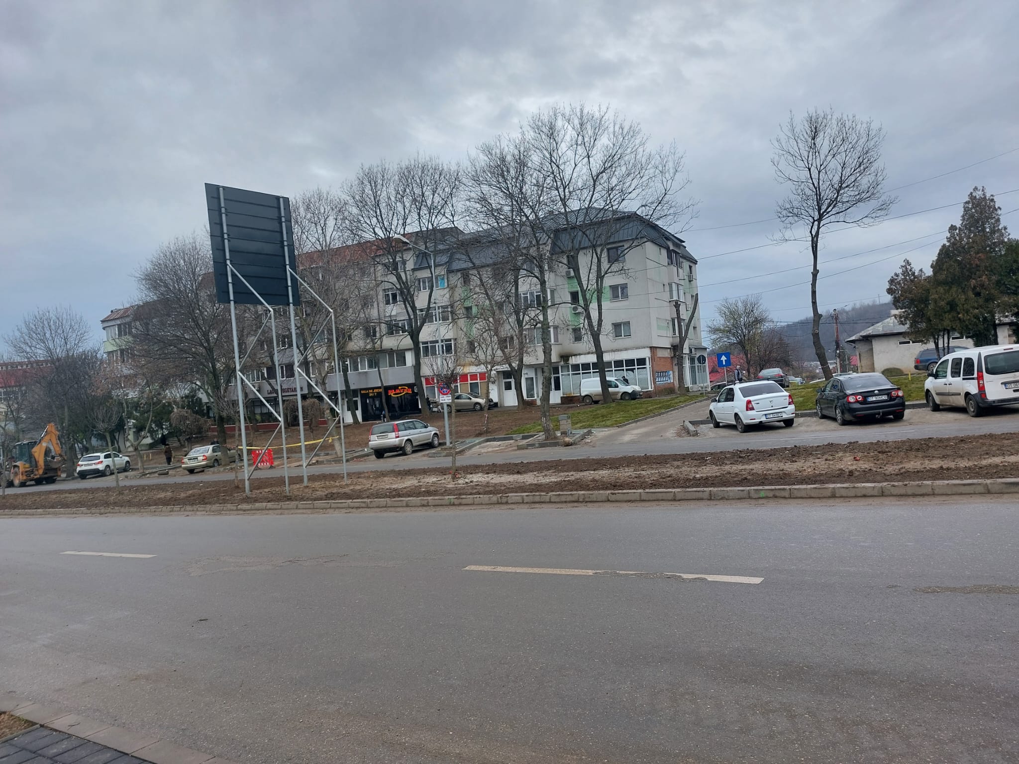 După finalizarea lucrările celor de la Compania de Apă la rețelele de alimentare cu apă și canalizare, pe partea cealaltă a noii zone de promenadă, respectiv la partea carosabilă și spațiul din fața blocurilor la parterul cărora își desfășoară activitatea Restaurantul Lacto Vegetarian, și nu numai. Aici, în total, s-au amenajat 26 de locuri de parcare și urmează a se monta rulouri de gazon și a se instala, de asemenea, un sistem de irigații modern.