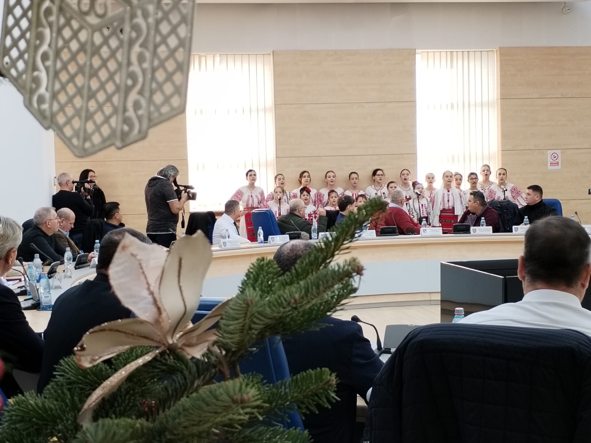 Consilierii județeni au avut parte de o surpriză joi, 21 decembrie, înainte de începerea ultimei ședințe ordinare din anul 2023. Aleșii au fost colindați de un grup vocal de fete și băieți, care la finalul micului spectacol au primit cadouri de la mesagerii lui Moș Crăciun.
